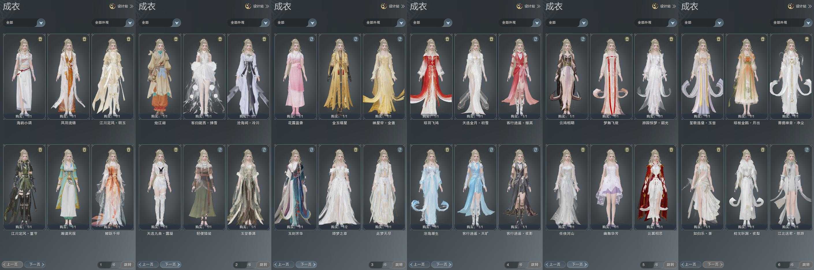 单盒成衣:[白如归衣, 五七盒衣, 白菩提衣, 金琼枝衣, 沧海衣, 唐风玉壶衣, 白游园衣, 婚纱衣]