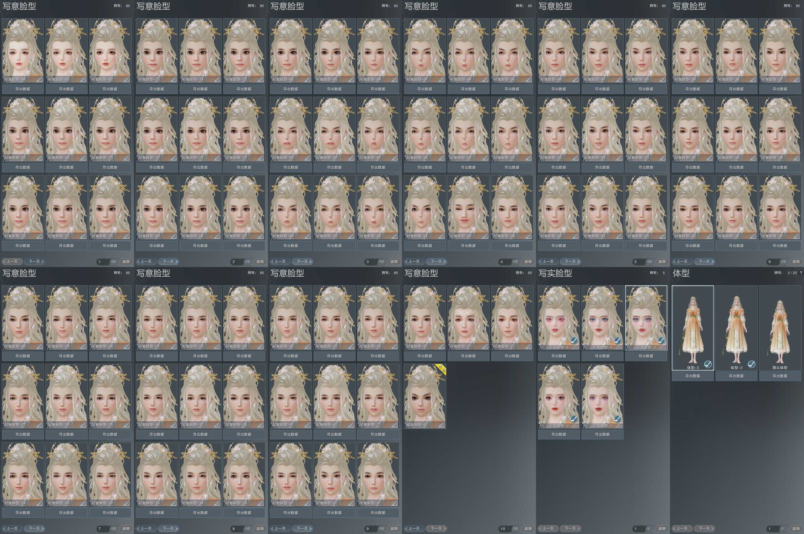 【捏脸】写意脸型85个,写实脸型5个,体型3个
