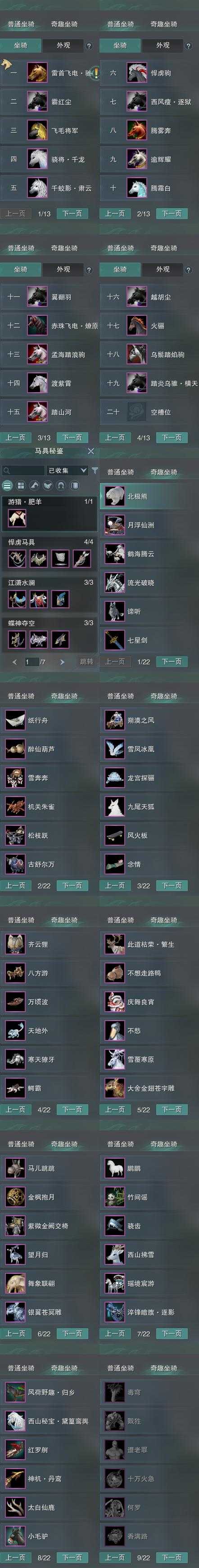 【坐骑】19个[踏炎横天, 西风瘦逐狱, 赤珠燎原, 飞毛将军, 肃云, 骁将千龙, 霸红尘, 雷首飞电驰辉, 乌鬃踏焰驹]