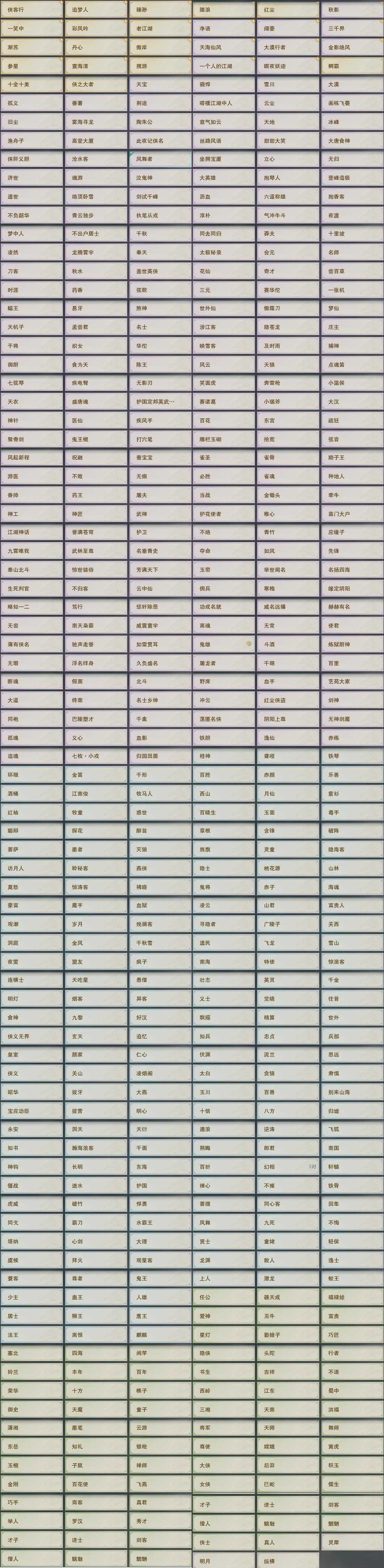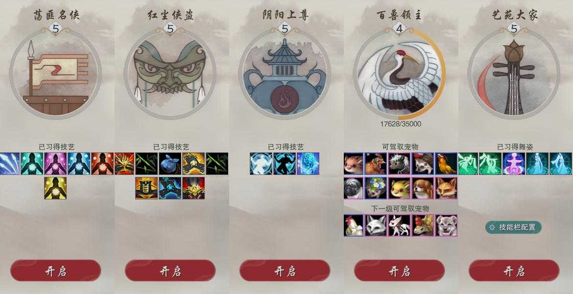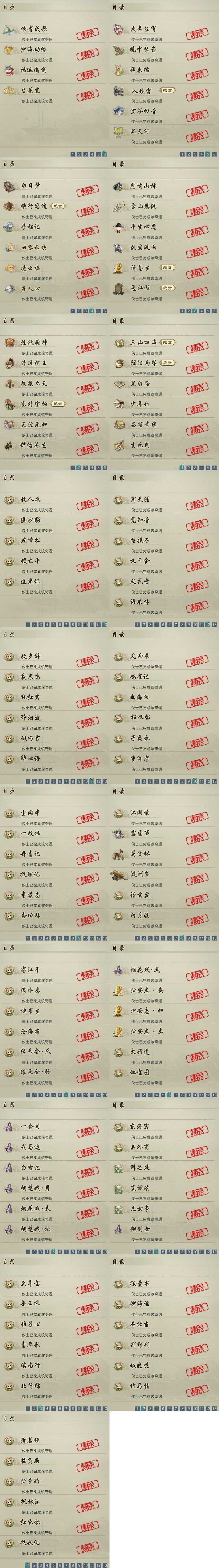 【奇遇】34个[白日梦, 天涯无归, 三山四海, 雪山恩仇, 阴阳两界, 平生心愿, 兔江湖, 黑白路, 塞外宝驹, 虎啸山林, 济苍生, 护佑苍生, 少年行, 故园风雨, 扶摇九天, 清风捕王, 侠行囧途, 寻猫记, 茶馆奇缘, 庆舞良宵, 入蛟宫, 生死判, 凌云梯, 炼狱厨神, 度人心, 空谷回音, 旧宴承欢, 镜中琴音, 泛天河, 侠者成歌]