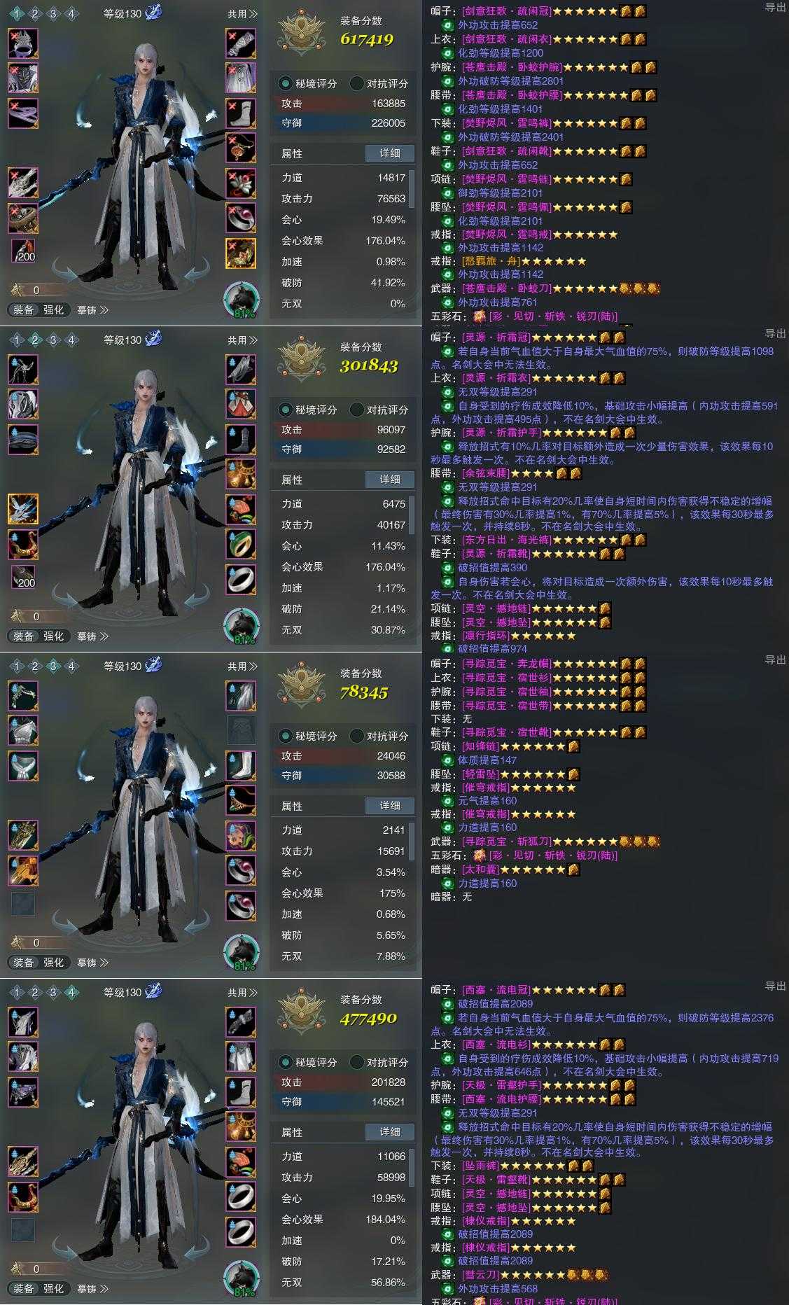 【装备】130级,北傲诀PVP617419,装备二301843,装备三78345,北傲诀PVE477490