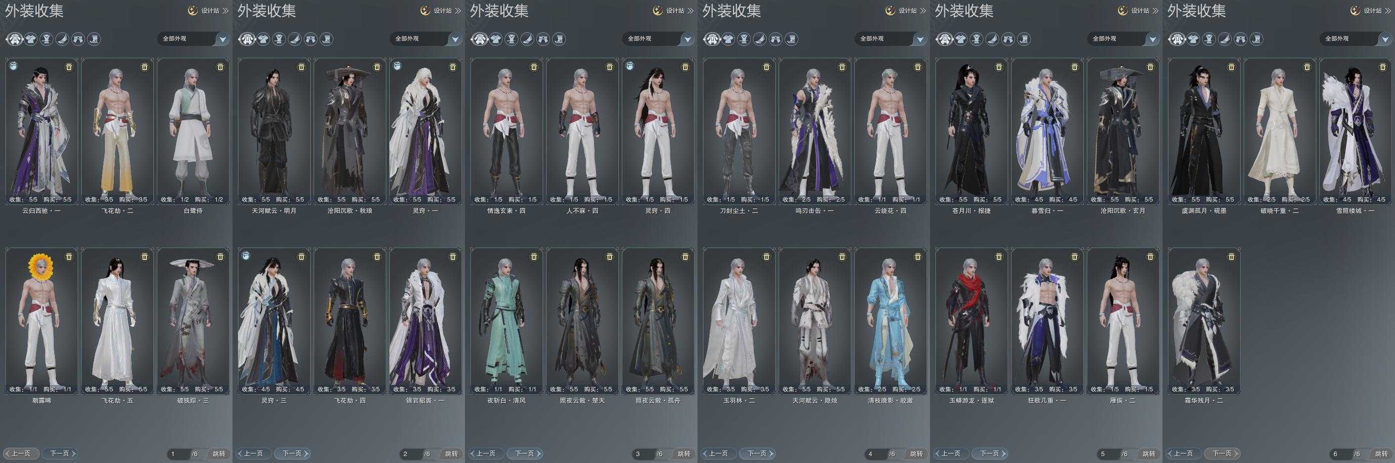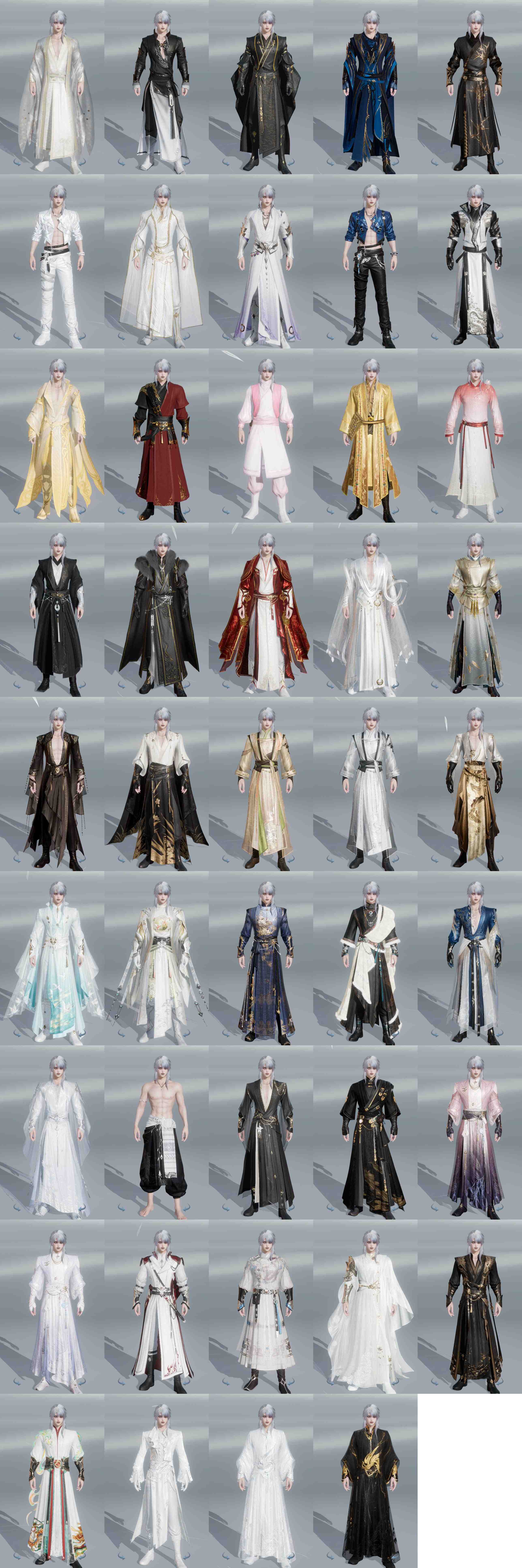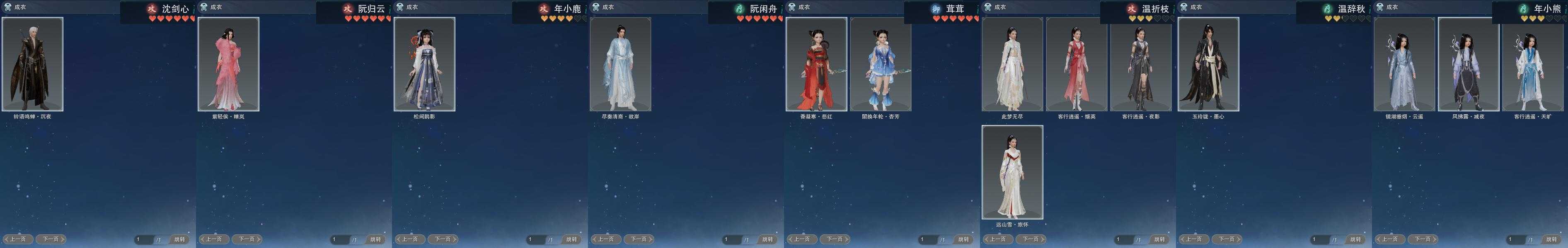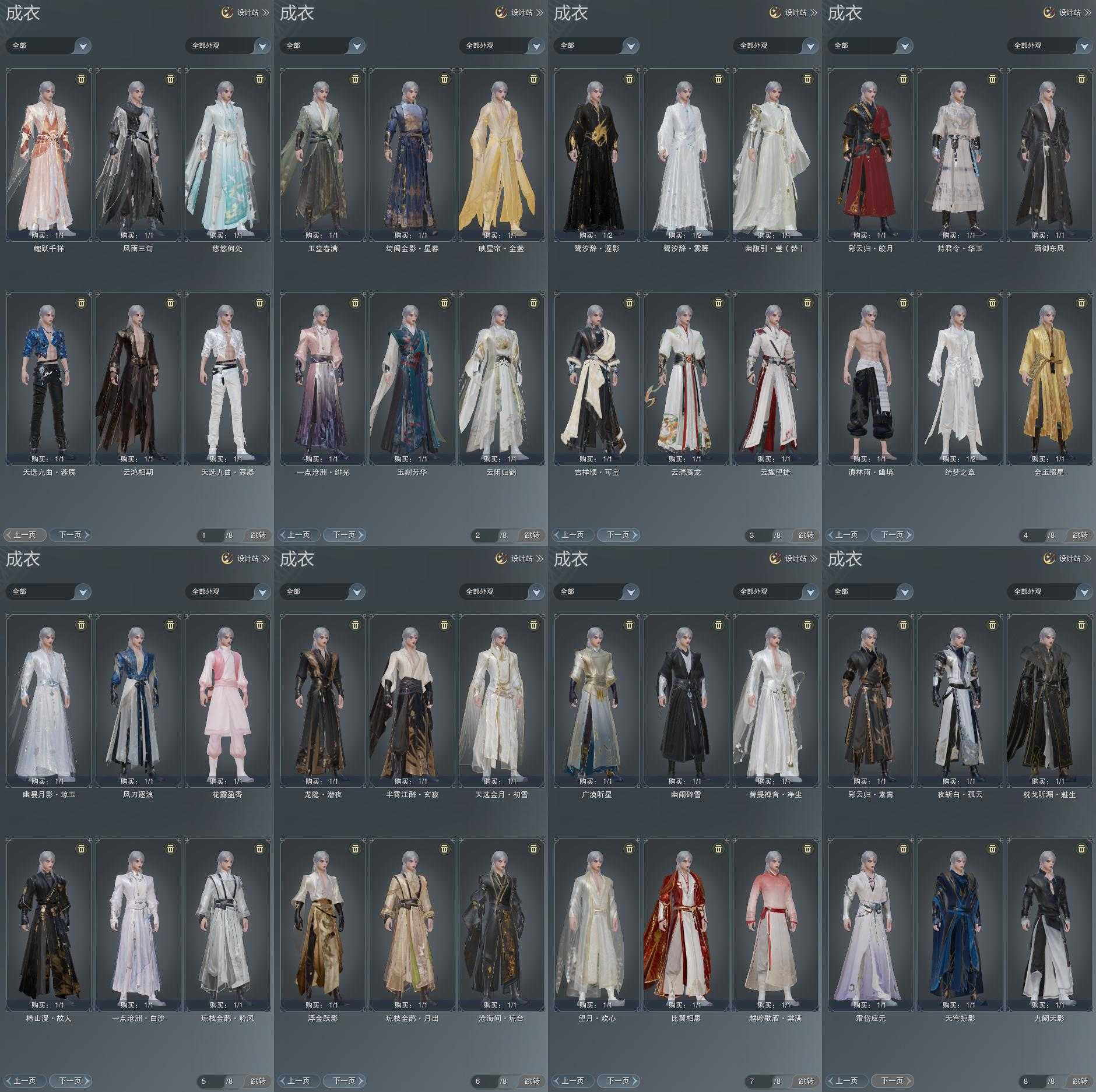 单盒成衣:[四代中秋粉衣, 棋盒衣, 黑玲珑衣, 白菩提衣, 白琼枝衣, 小金龙衣, 黑藏袍, 刀宗衣, 白幽昙衣, 黑傣族衣, 卿酒盒衣, 黑椿山衣, 粉沧洲盒衣, 紫沧洲盒衣, 策二盒衣, 白持君衣, 白幽馥衣替, 龙盒衣, 婚纱衣, 白鹭衣, 黑鹭衣]