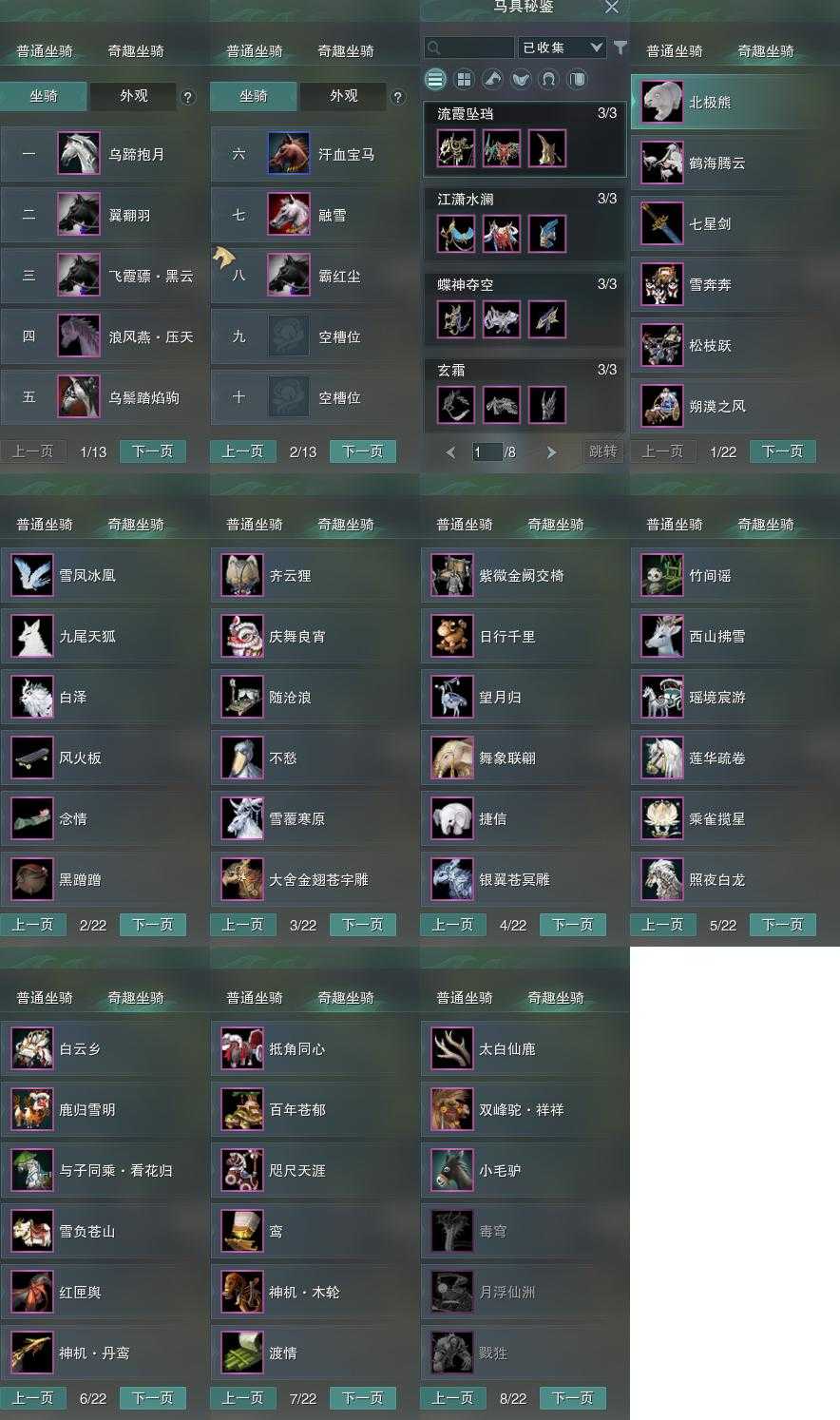 【坐骑】8个[飞霞骠黑云, 乌蹄抱月, 霸红尘, 乌鬃踏焰驹]