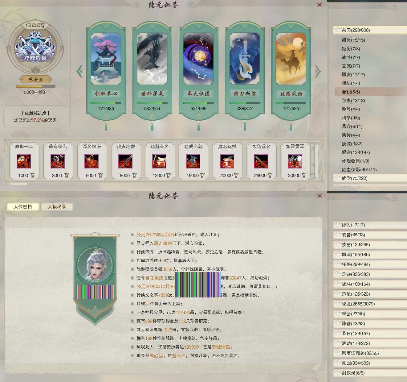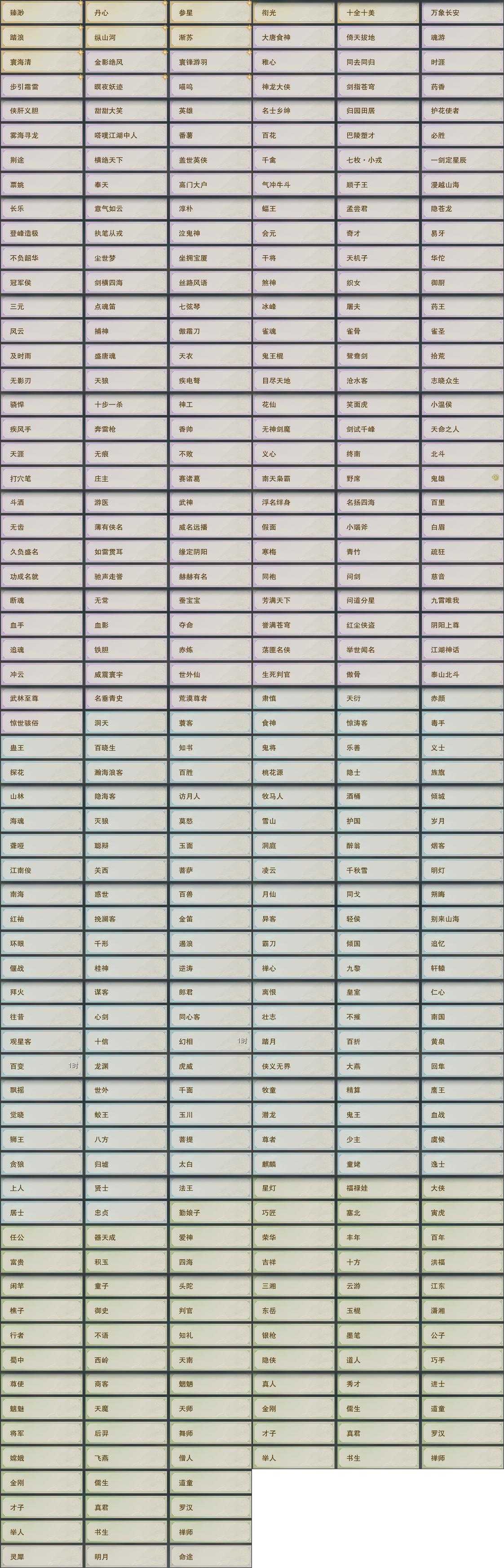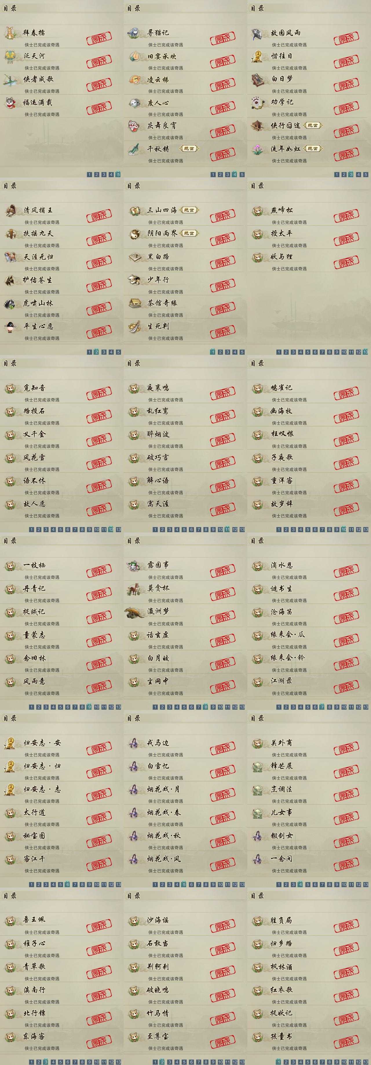 【奇遇】28个[白日梦, 天涯无归, 三山四海, 劝学记, 阴阳两界, 平生心愿, 黑白路, 惜往日, 虎啸山林, 护佑苍生, 少年行, 故园风雨, 扶摇九天, 流年如虹, 清风捕王, 寻猫记, 侠行囧途, 茶馆奇缘, 庆舞良宵, 生死判, 凌云梯, 千秋铸, 度人心, 旧宴承欢, 泛天河, 侠者成歌, 拜春擂, 福运满载]