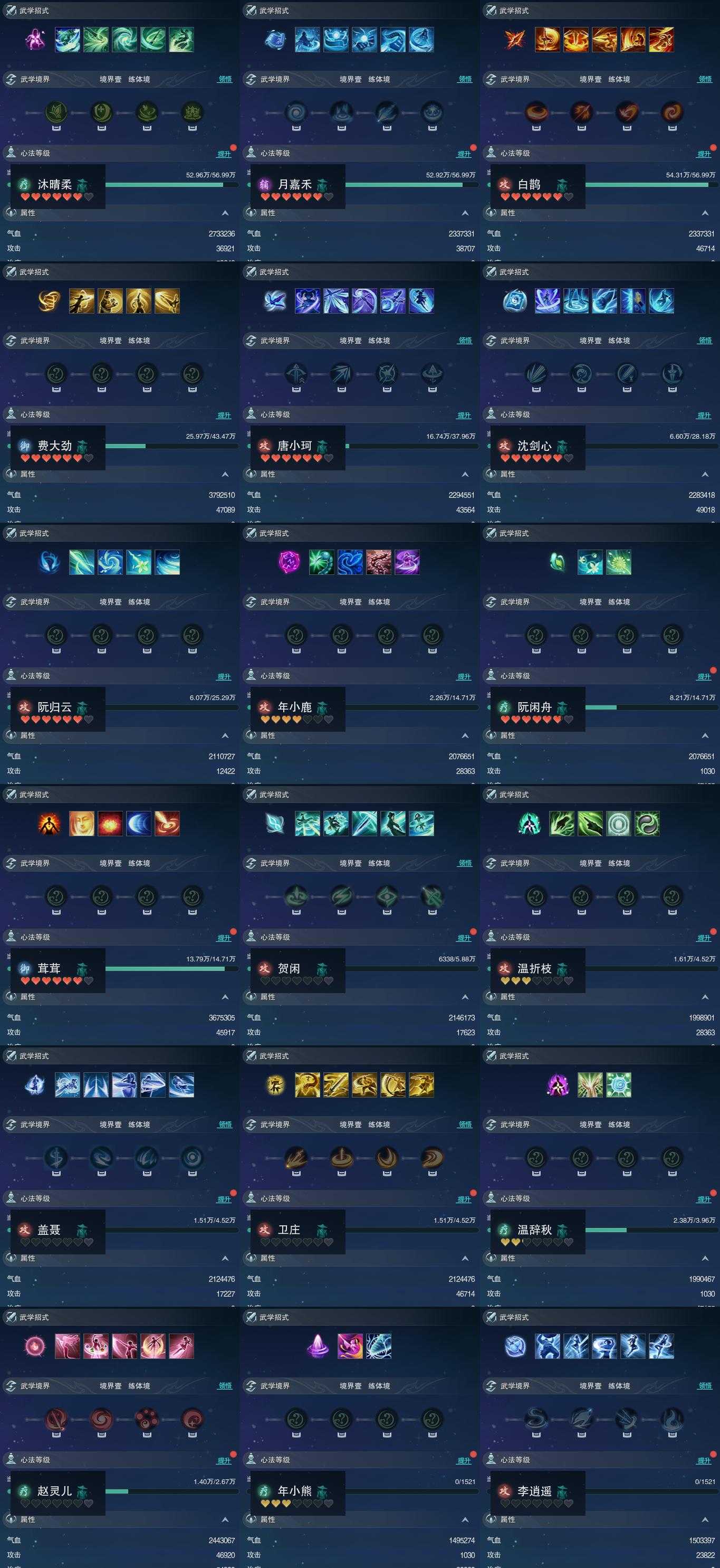【同伴】沐晴柔80级境界壹,月嘉禾80级境界壹,白鹊80级境界壹,费大劲78级境界壹,唐小珂77级境界壹,沈剑心76级境界壹,阮归云74级境界壹,年小鹿70级境界壹,阮闲舟70级境界壹,茸茸70级境界壹,贺闲63级境界壹,温折枝61级境界壹,盖聂61级境界壹,卫庄61级境界壹,温辞秋60级境界壹,赵灵儿57级境界壹,年小熊1级境界壹,李逍遥1级境界壹
