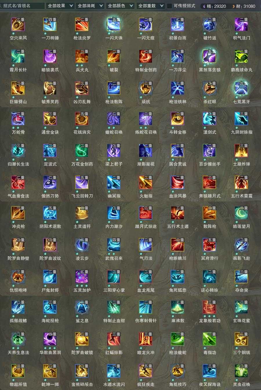 【橙武】(仅本门派)[130小铁*5, 120小铁*2, 110小铁*12, 100小铁*216, 95小铁*204, 90小铁*208, 80小铁*215, 70小铁*209, 95CW新亭侯, 80CW雪怒, 门派特效五相斩]