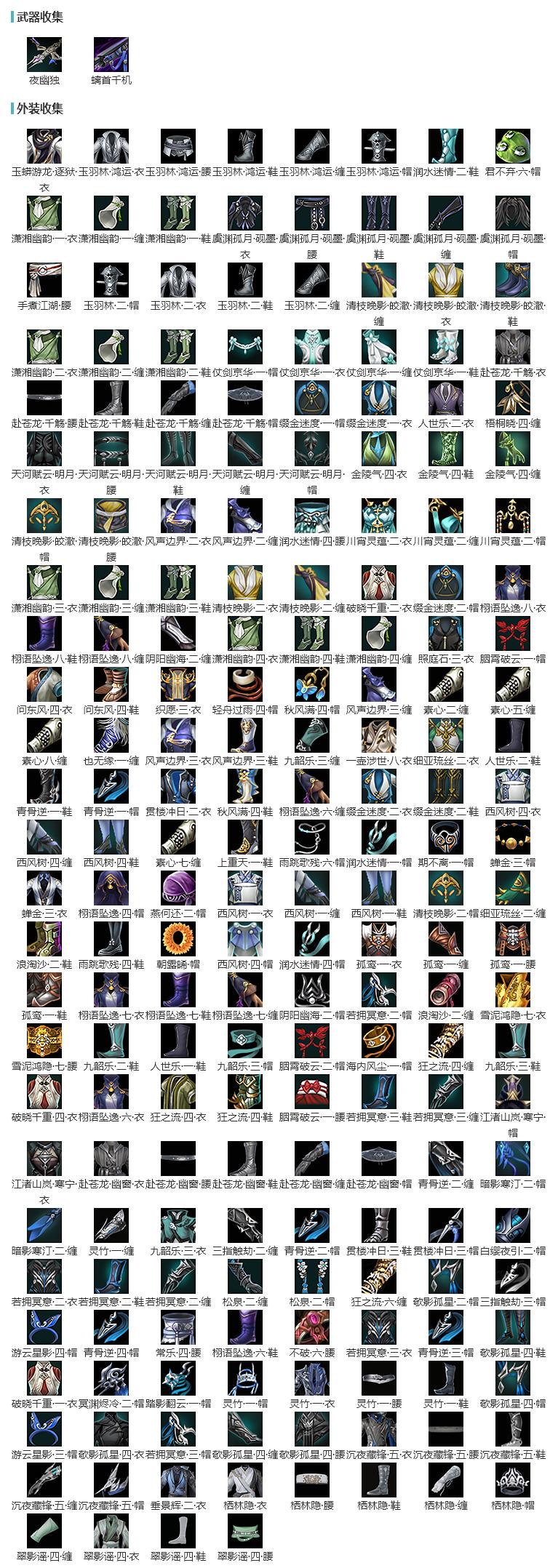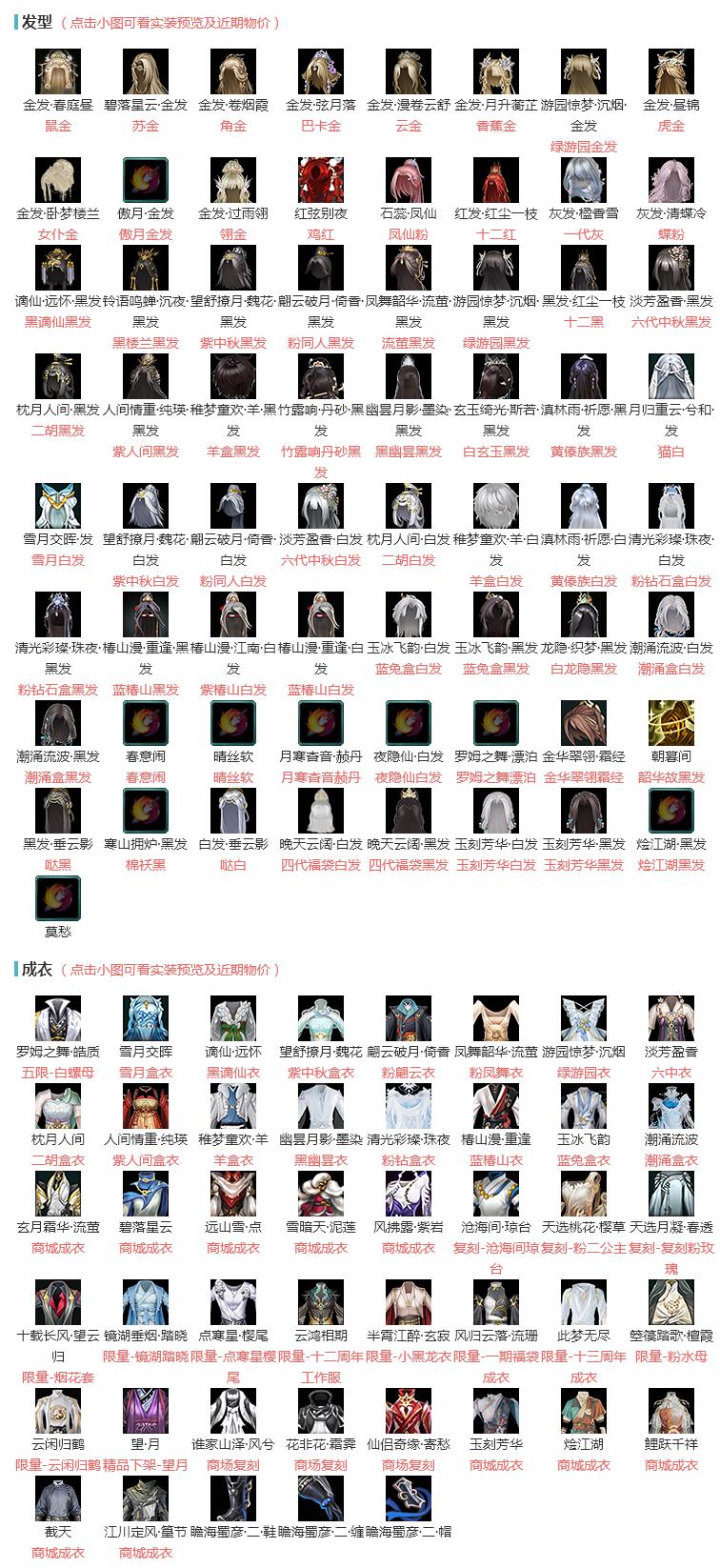 限时限量:[云闲归鹤, 小黑龙衣, 镜湖踏晓, 烟花套, 十三周年成衣, 十二周年工作服, 点寒星樱尾, 一期福袋成衣, 粉水母]