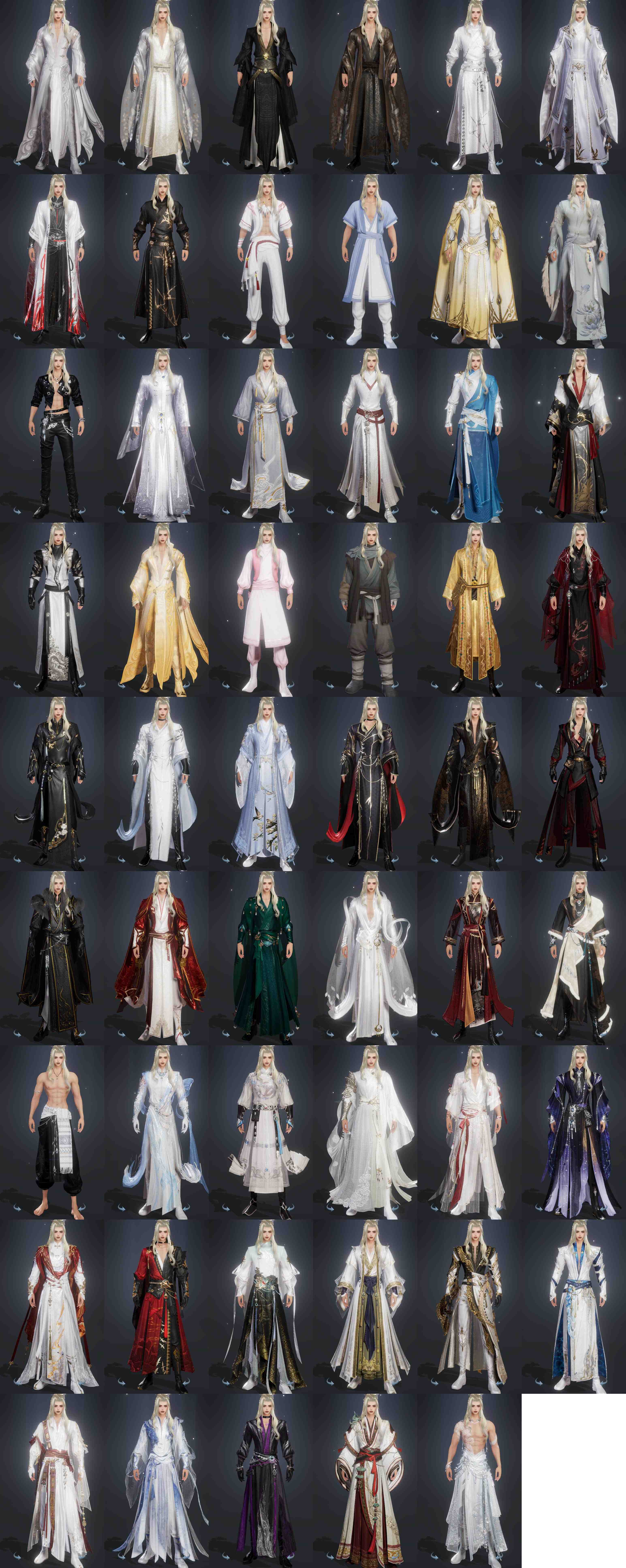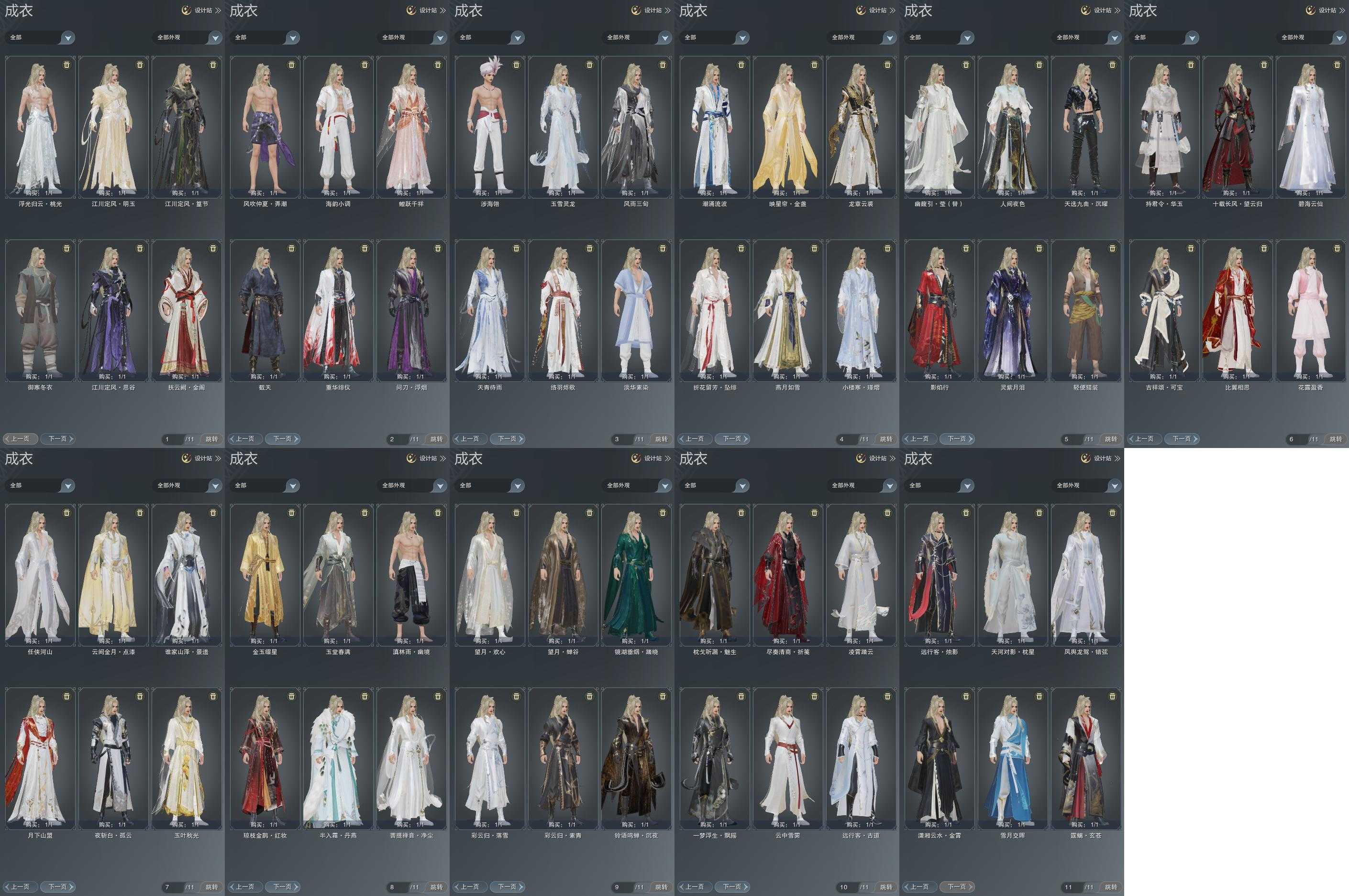 单盒成衣:[伞盒衣, 猪盒衣, 白腿盒衣, 红腿盒衣, 白菩提衣, 黑傣族衣, 灵龙盒衣, 白幽馥衣替, 人间夜色, 燕月盒衣, 潮涌盒衣, 络羽衣, 瓷盒衣, 紫问刀, 原色战国, 粉浮光]