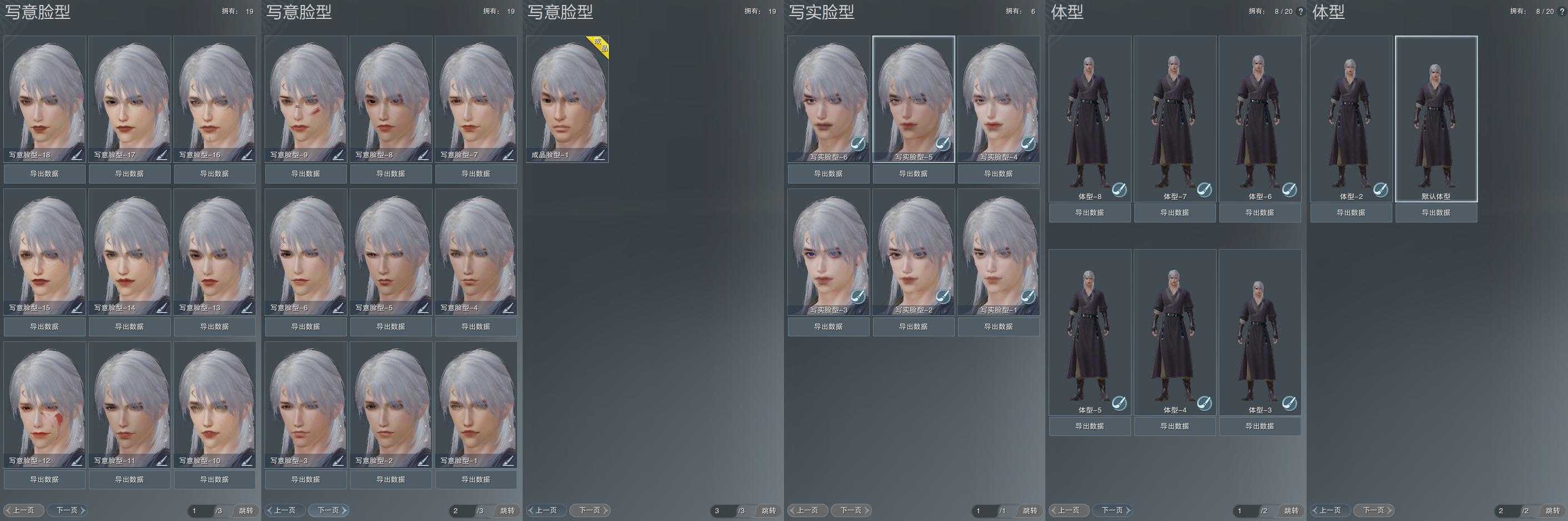【捏脸】写意脸型19个,写实脸型6个,体型8个
