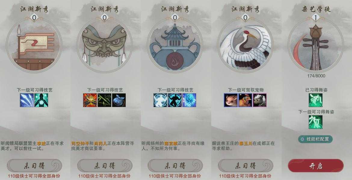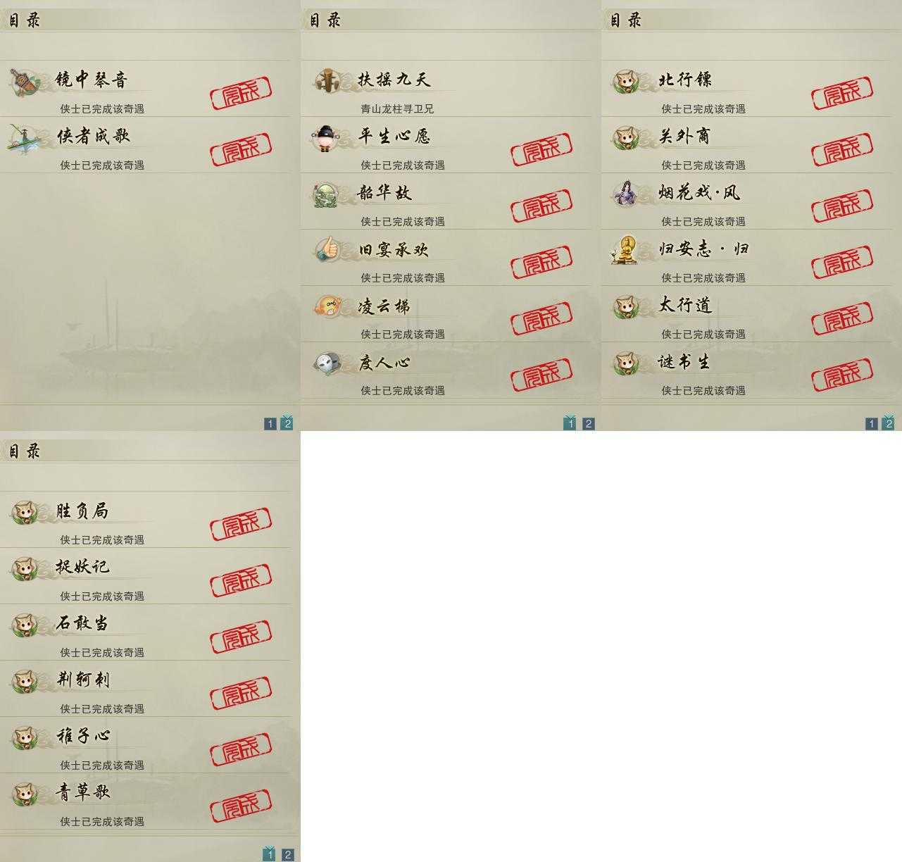 【奇遇】8个[平生心愿, 韶华故, 扶摇九天, 凌云梯, 度人心, 旧宴承欢, 镜中琴音, 侠者成歌]