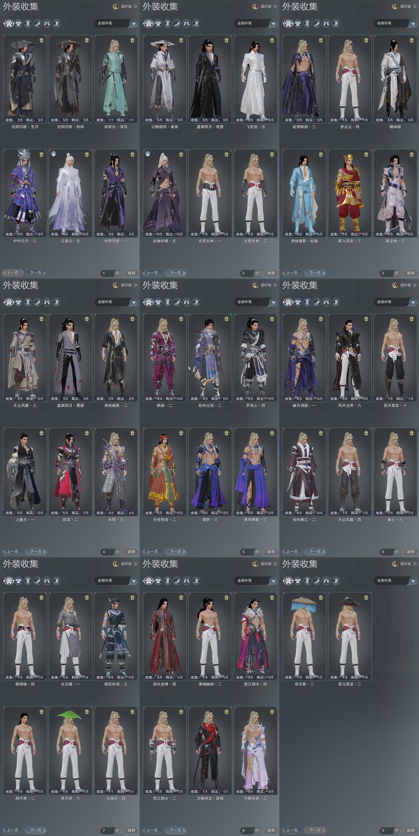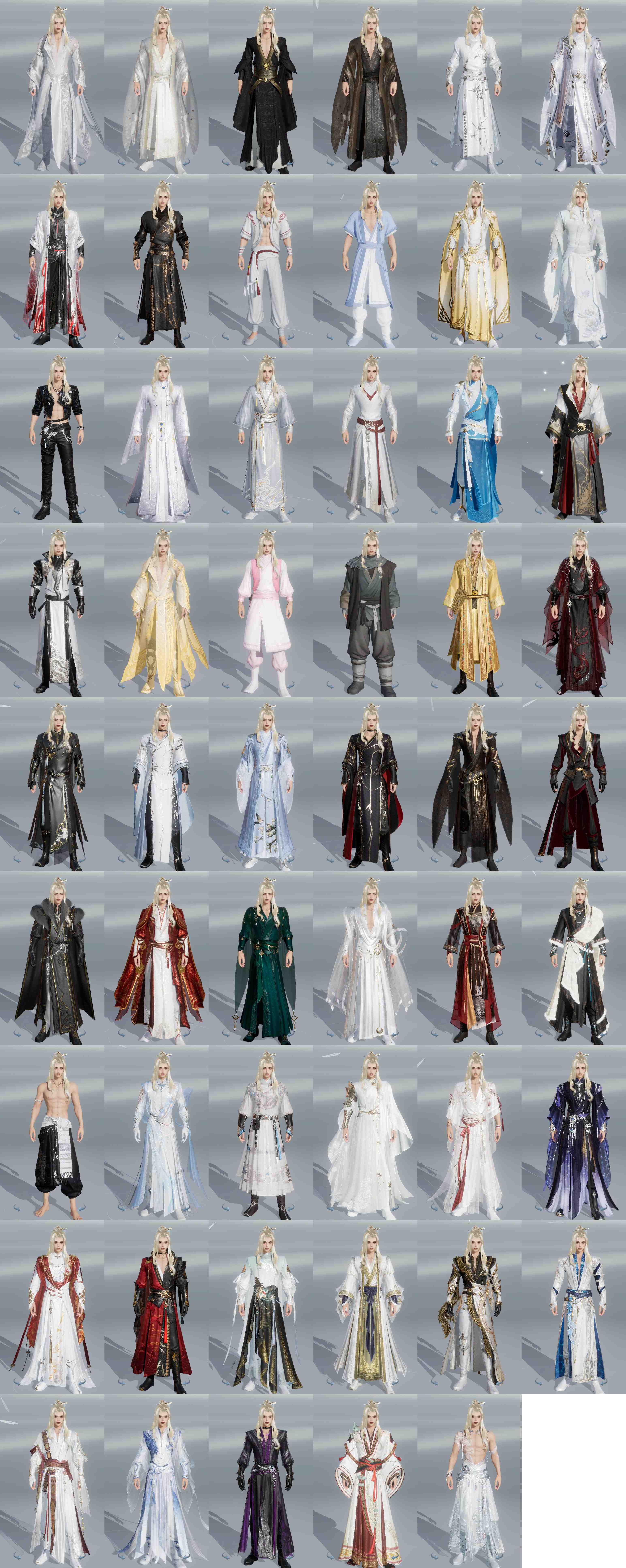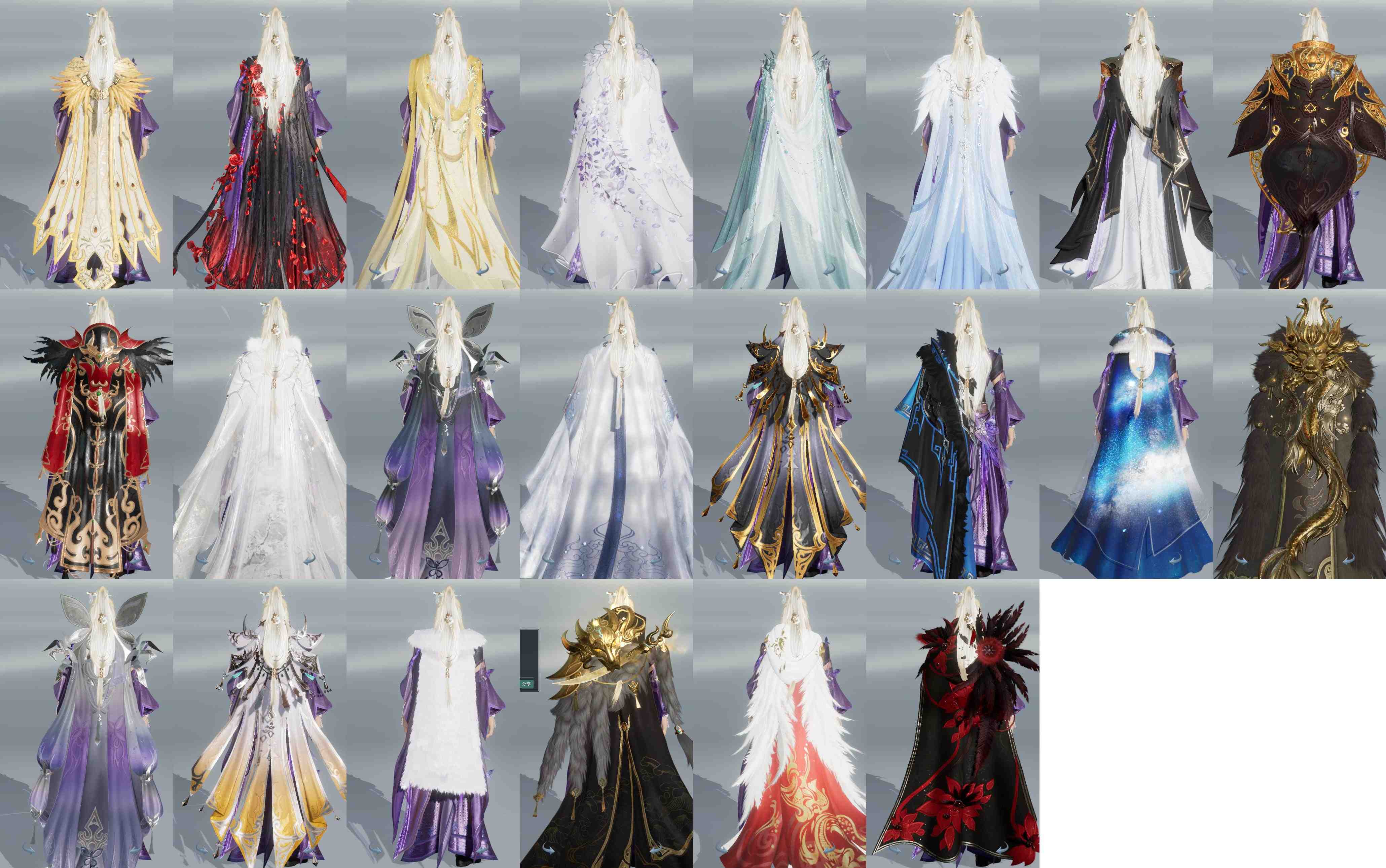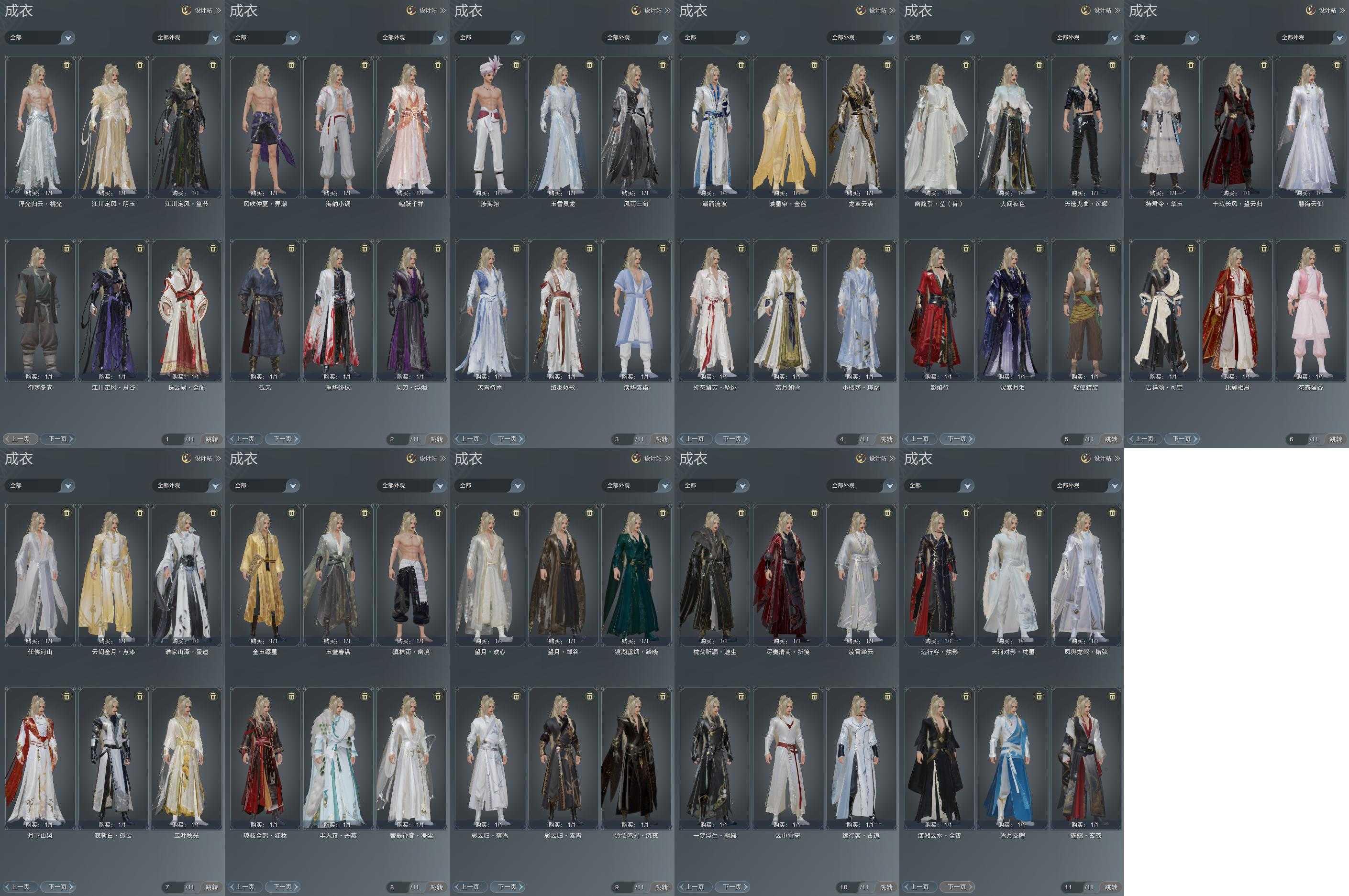 单盒成衣:[白腿盒衣, 黑傣族衣, 灵龙盒衣, 白幽馥衣替, 人间夜色, 潮涌盒衣, 络羽衣, 瓷盒衣, 紫问刀, 原色战国, 粉浮光]