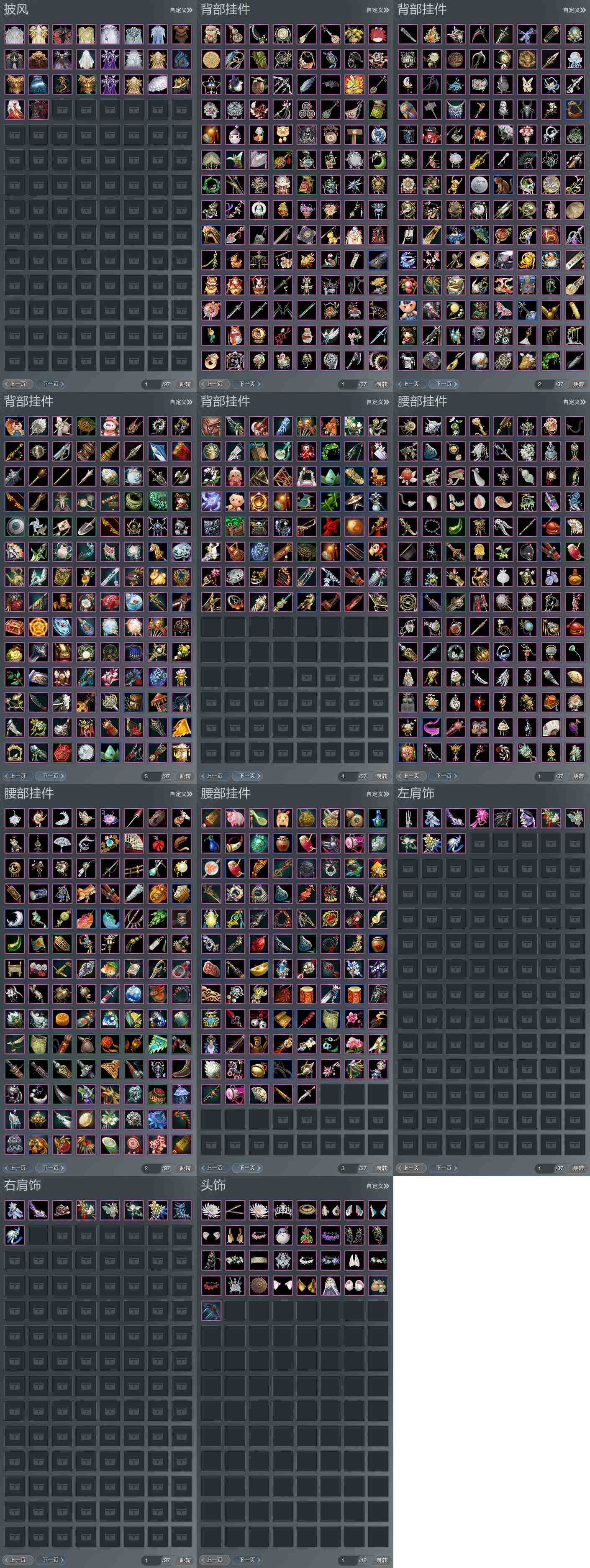 【披风】26个,[衍天预热披风, 天火之眼, 7W资历披风, 一代浩气, 情R枕, 14W资历披风, 三山披风, 奇遇披风, 二代恶人, 蓬莱盒子披风, 猪盒子披风, 毒罗干, 河汉, 狼头, 龙头, 新星空, 空山闲雪, 云麒赫奕, 繁华金语, 赤庭葳蕤]