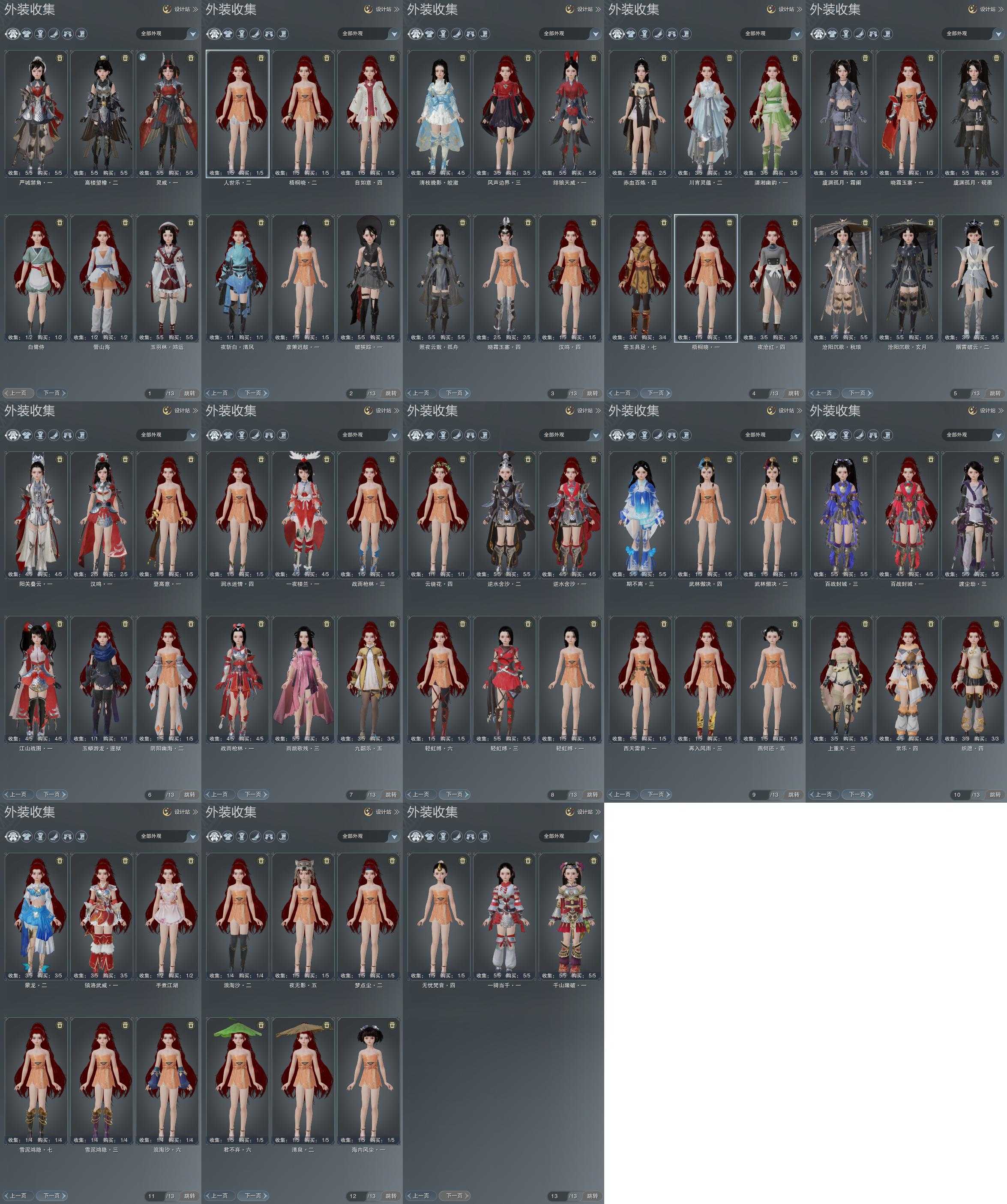 限时限量:[白九壤, 重华绯仪, 十三万资历衣, 中宵渊霜, 幽涧愀兮, 十三周年成衣, 十四周年工作服, 云闲归鹤]