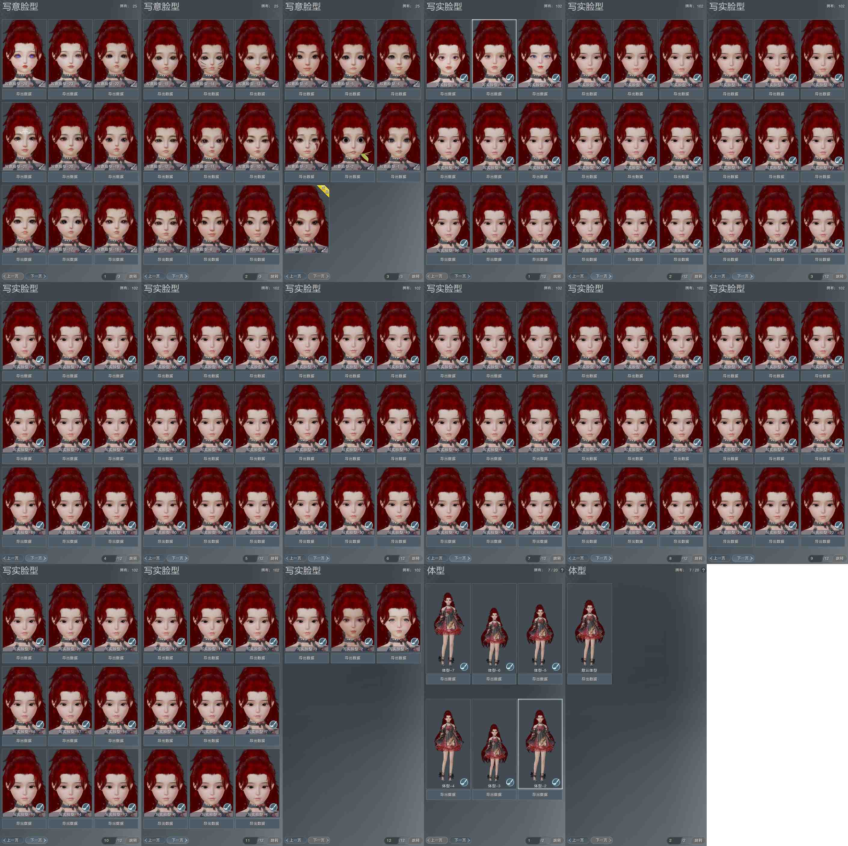 【捏脸】写意脸型25个,写实脸型102个,体型7个