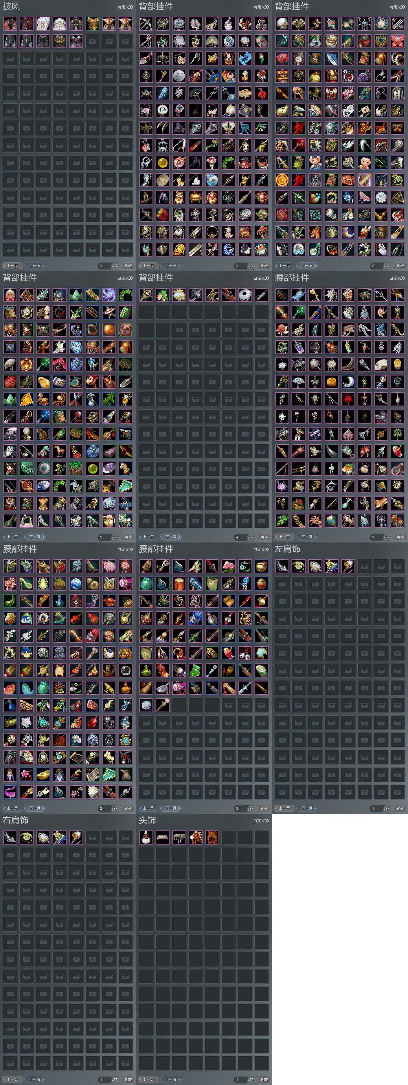 【披风】13个,[一代战令披风, 衍天预热披风, 7W资历披风, 三山披风, 喵罗干, 虎盒披风, 赤庭葳蕤]