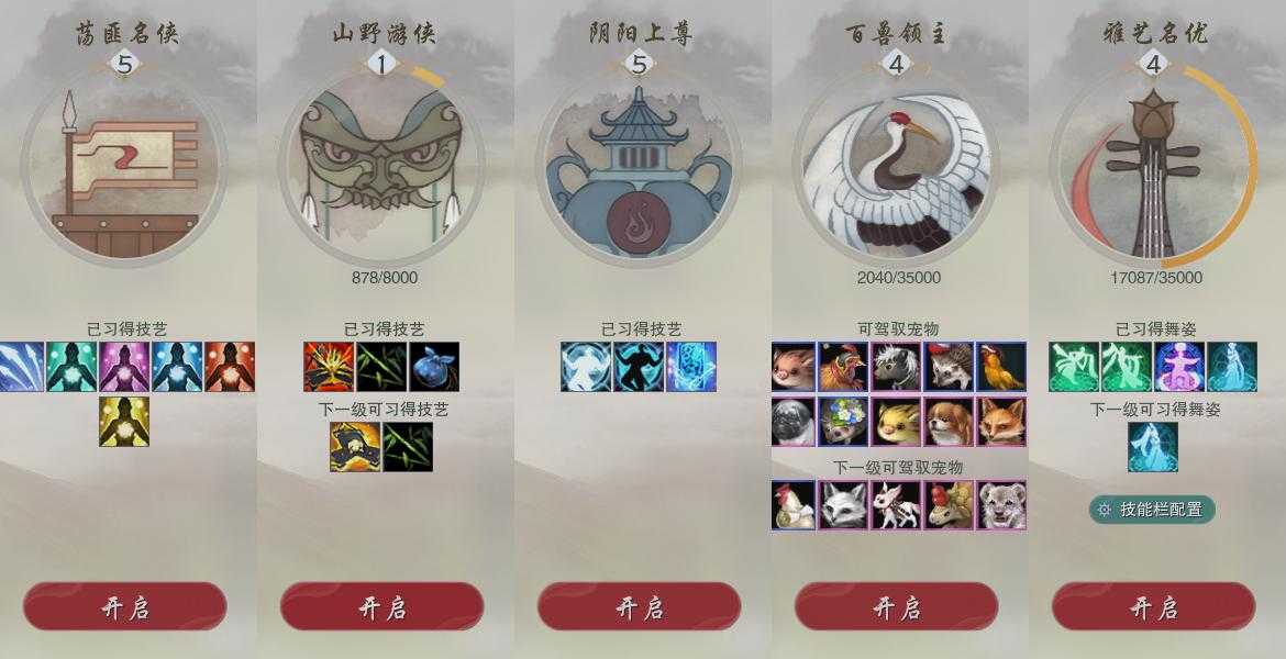 【奇遇】26个[白日梦, 天涯无归, 三山四海, 雪山恩仇, 阴阳两界, 平生心愿, 黑白路, 惜往日, 塞外宝驹, 护佑苍生, 少年行, 故园风雨, 扶摇九天, 清风捕王, 侠行囧途, 茶馆奇缘, 庆舞良宵, 生死判, 凌云梯, 炼狱厨神, 度人心, 赴九幽, 旧宴承欢, 泛天河, 拜春擂, 福运满载]