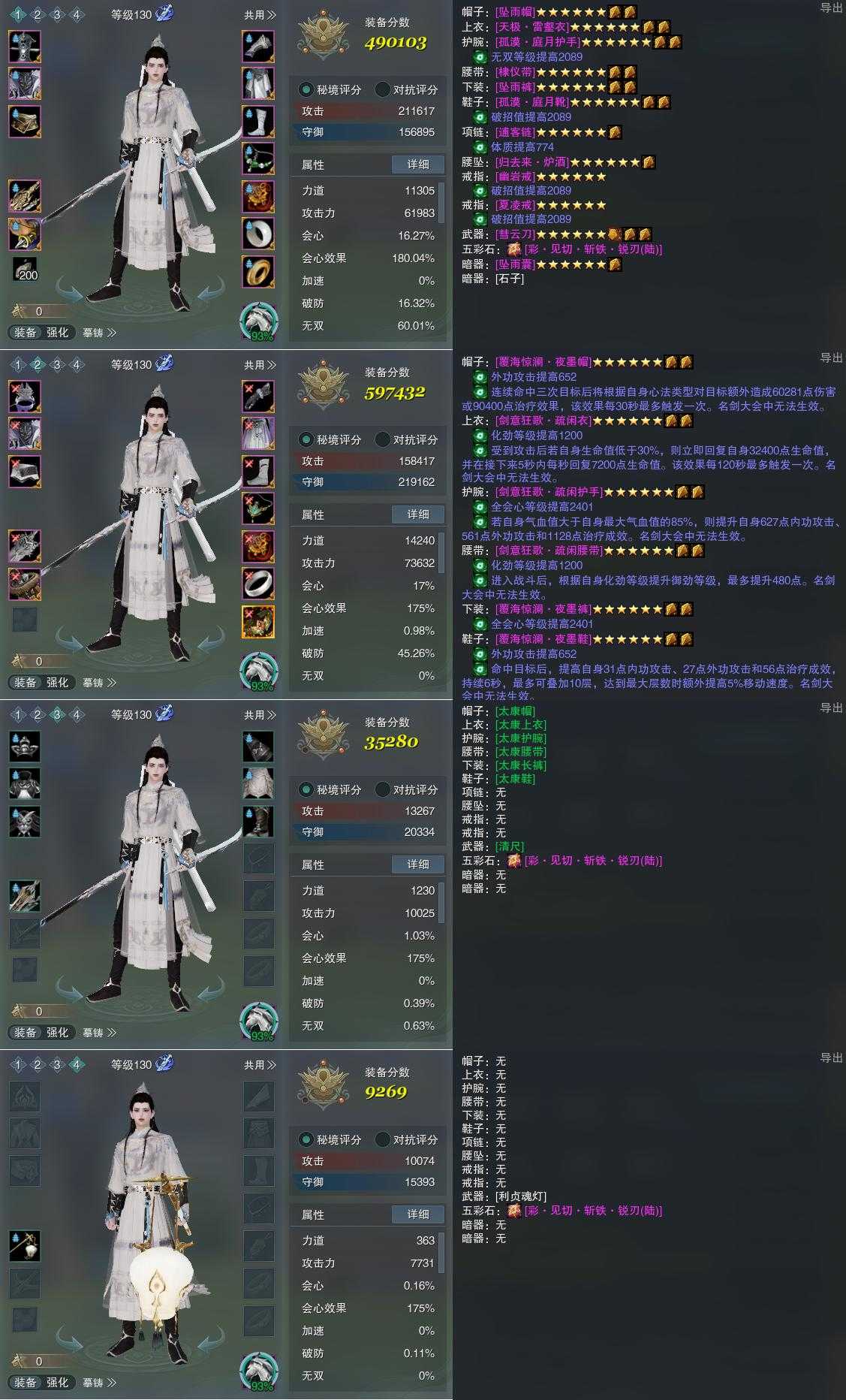 【装备】130级,北傲诀PVE490103,北傲诀PVP597432,装备三35280,装备四9269