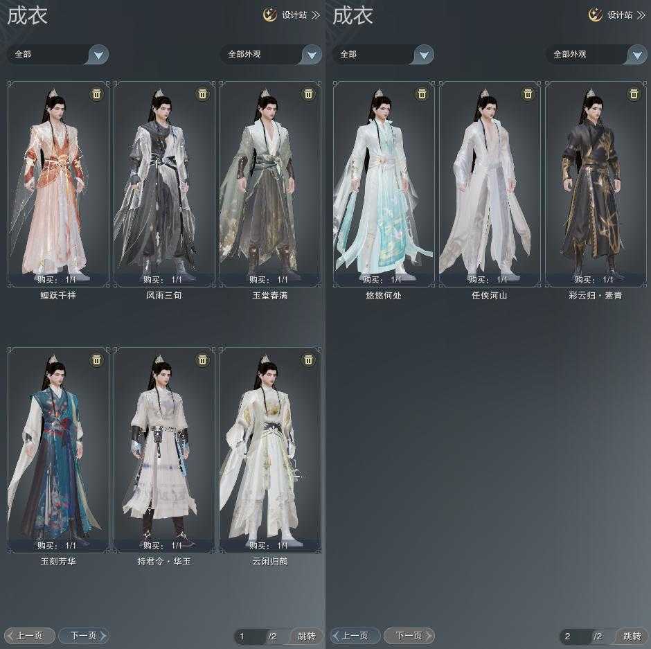 【成衣】总计9件,单盒成衣1件,限时限量4件,商城4件,下架0件