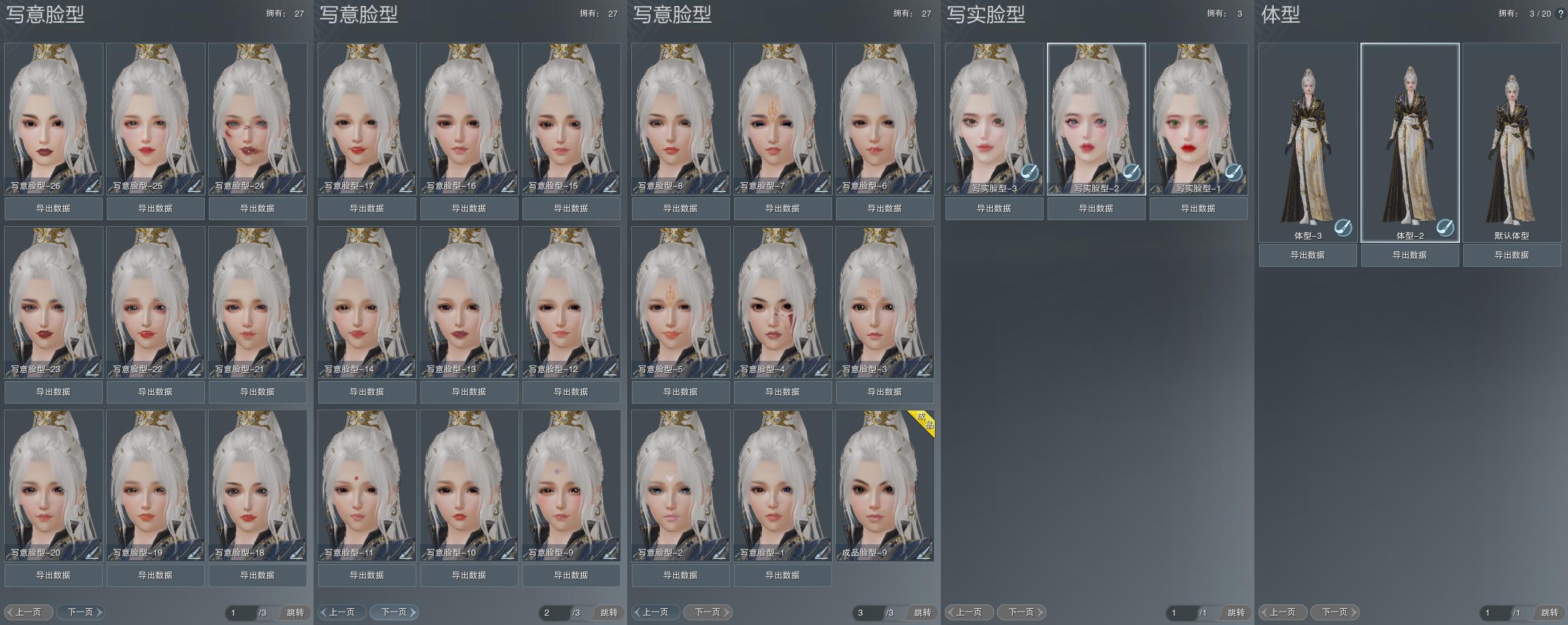 【捏脸】写意脸型27个,写实脸型3个,体型3个