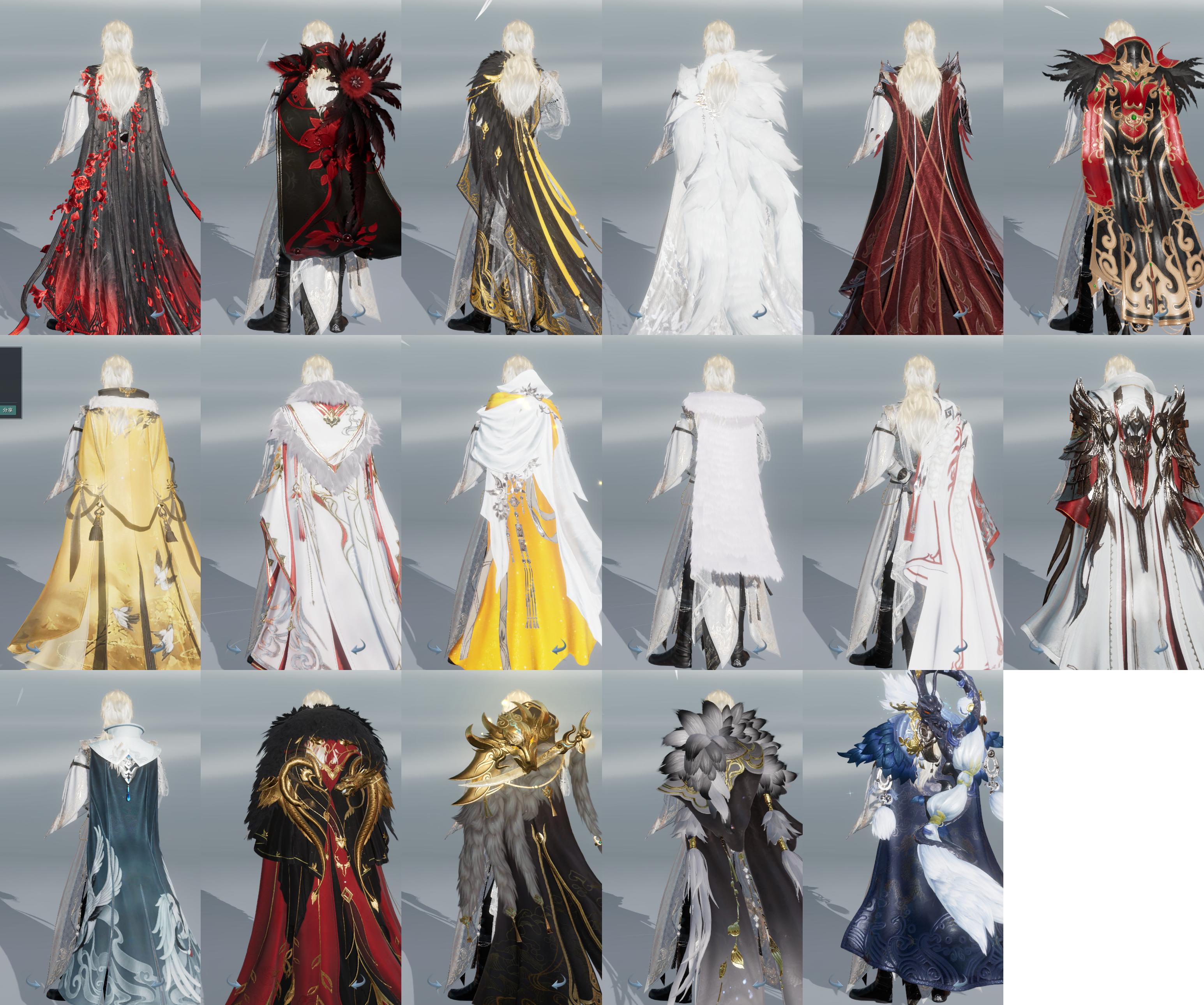 限时限量:[重华绯仪, 红玫瑰, 微草暮雨, 霆螭煌天, 黄长安, 烟花套, 镜湖吹荷, 镜湖云遥, 镜湖踏晓, 镜湖阑珊, 锦绣明辉, 一期福袋成衣, 白泳衣, 十三周年成衣, 庭落西风, 十四周年工作服]