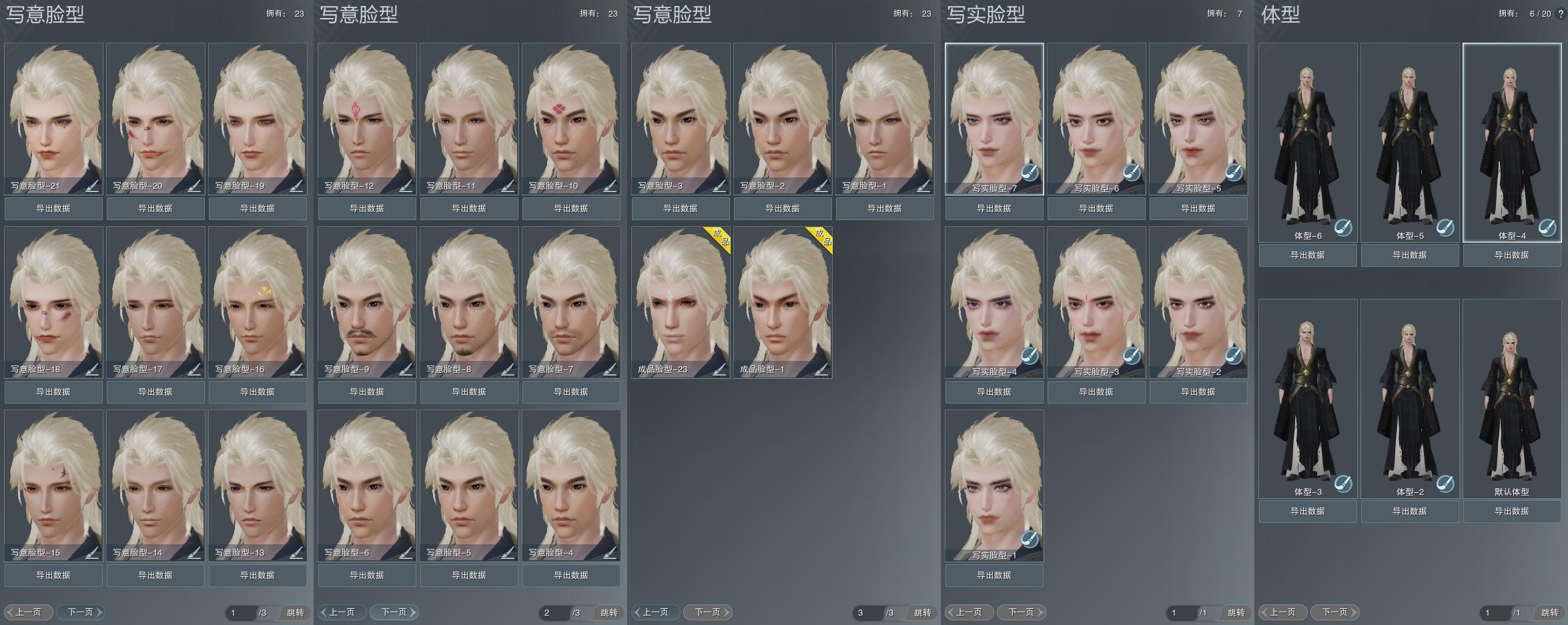 【捏脸】写意脸型23个,写实脸型7个,体型6个
