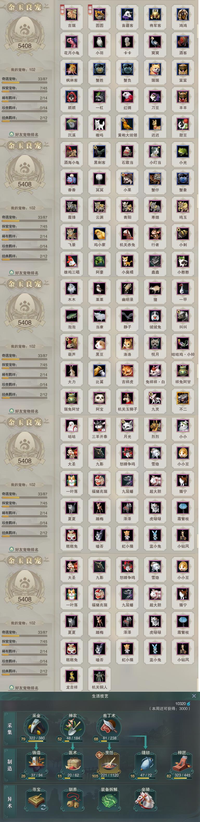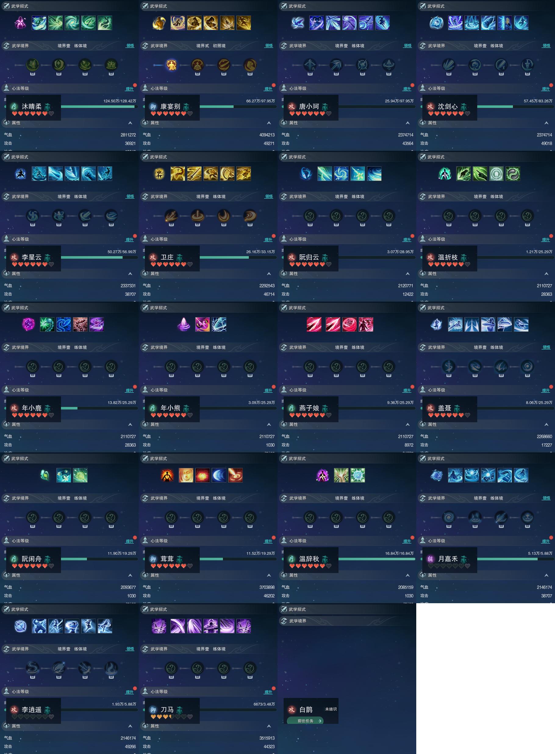【同伴】沐晴柔86级境界壹,康宴别84级境界贰,唐小珂84级境界壹,沈剑心84级境界壹,李星云80级境界壹,卫庄志76级境界壹,阮归云75级境界壹,温折枝74级境界壹,年小鹿74级境界壹,年小熊74级境界壹,燕子娘74级境界壹,盖聂志74级境界壹,阮闲舟72级境界壹,茸茸志72级境界壹,温辞秋71级境界壹,月嘉禾63级境界壹,李逍遥63级境界壹,刀马志59级境界壹,白鹊级