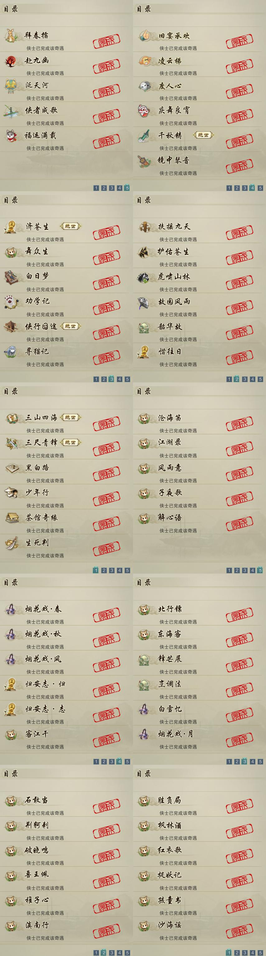 【奇遇】29个[白日梦, 三山四海, 劝学记, 黑白路, 惜往日, 虎啸山林, 韶华故, 济苍生, 护佑苍生, 少年行, 扶摇九天, 故园风雨, 三尺青锋, 舞众生, 侠行囧途, 寻猫记, 茶馆奇缘, 庆舞良宵, 生死判, 凌云梯, 千秋铸, 赴九幽, 度人心, 旧宴承欢, 泛天河, 镜中琴音, 侠者成歌, 拜春擂, 福运满载]