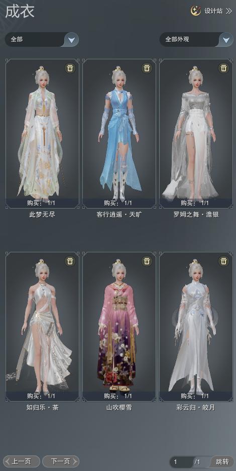 【成衣】总计6件,单盒成衣2件,限时限量4件,商城0件,下架0件