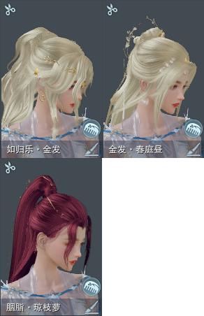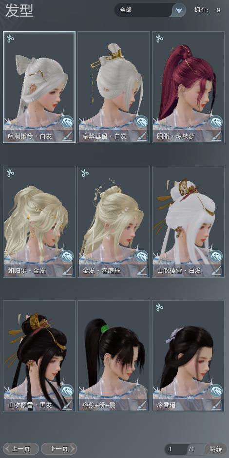 【发型】金发2个[鼠金, 如归金], 红发1个[紫发], 黑发1个, 白发3个, 盒子发型[山吹樱雪黑发, 山吹樱雪白发, 幽涧愀兮白发], 总页数1
