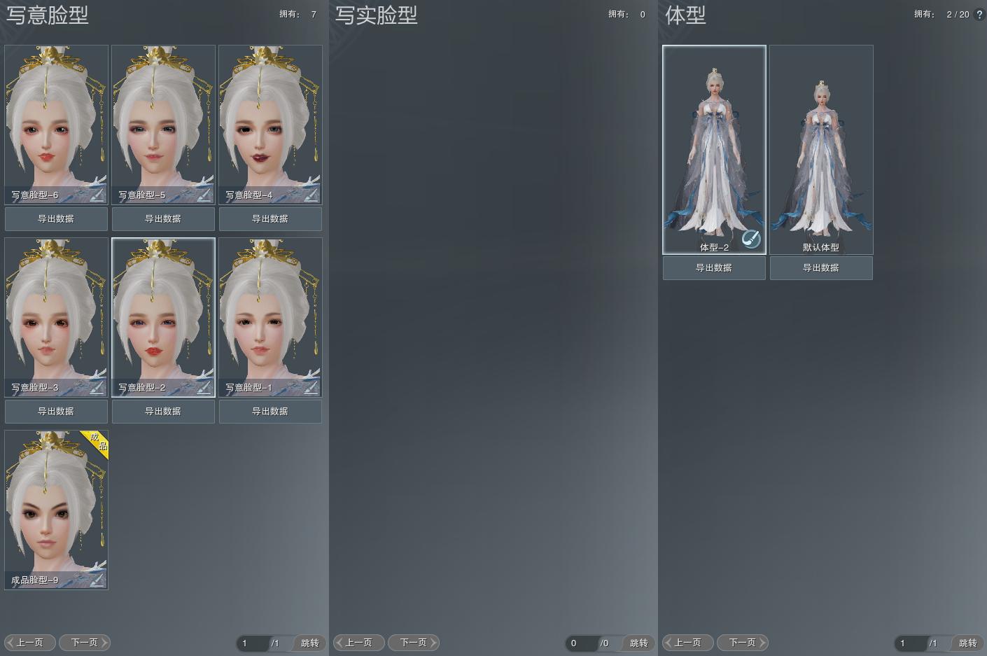 【捏脸】写意脸型7个,写实脸型0个,体型2个