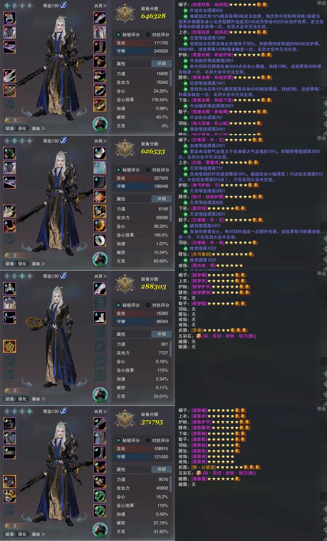 【装备】130级,北傲诀PVP646328,北傲诀PVE626533,装备三288303,霸刀装备四371795