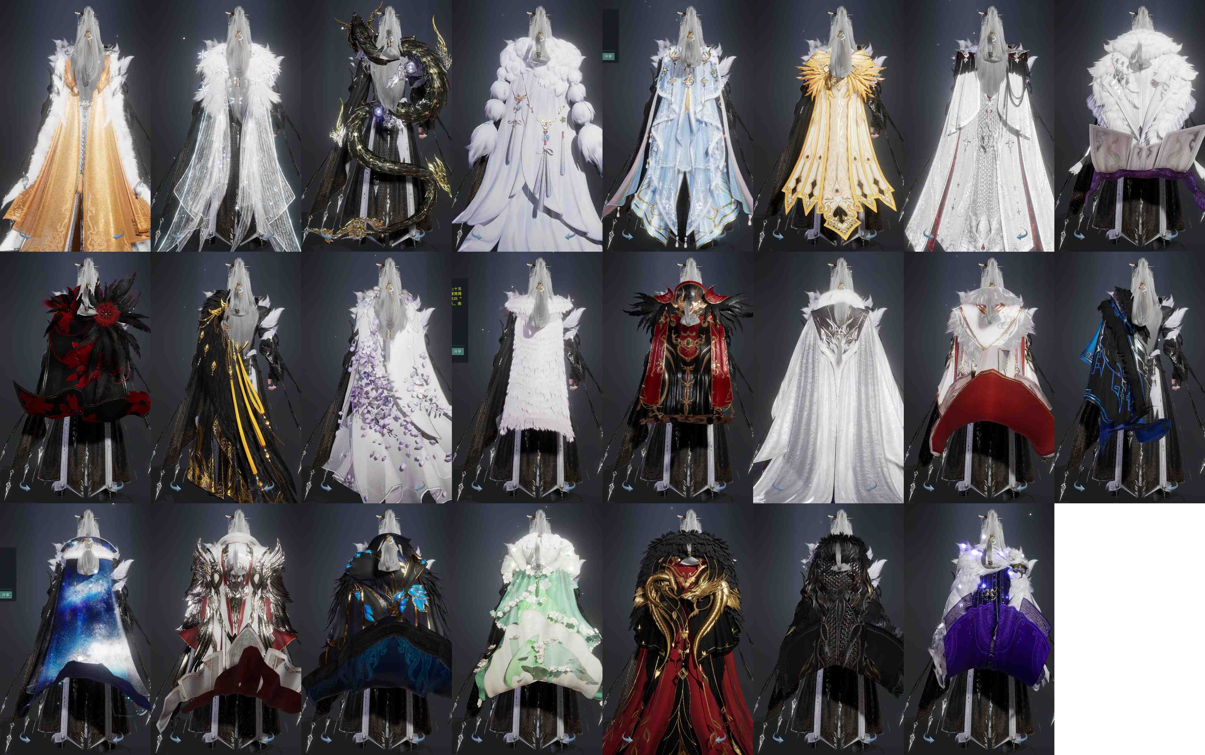 限时限量:[富婆套, 水云寒写晖, 水云寒雪涛, 红云飞, 海韵小调, 蓝沐云, 红玫瑰, 黄玫瑰, 粉封川, 霆螭玄苍, 十三万资历衣, 十六万资历衣, 金浮琅玉, 瀚漠民服, 烟花套, 十二周年工作服, 客行逍遥夜影, 万川青绿云母, 蓝浪海, 庭落西风, 十四周年工作服, 云闲归鹤]