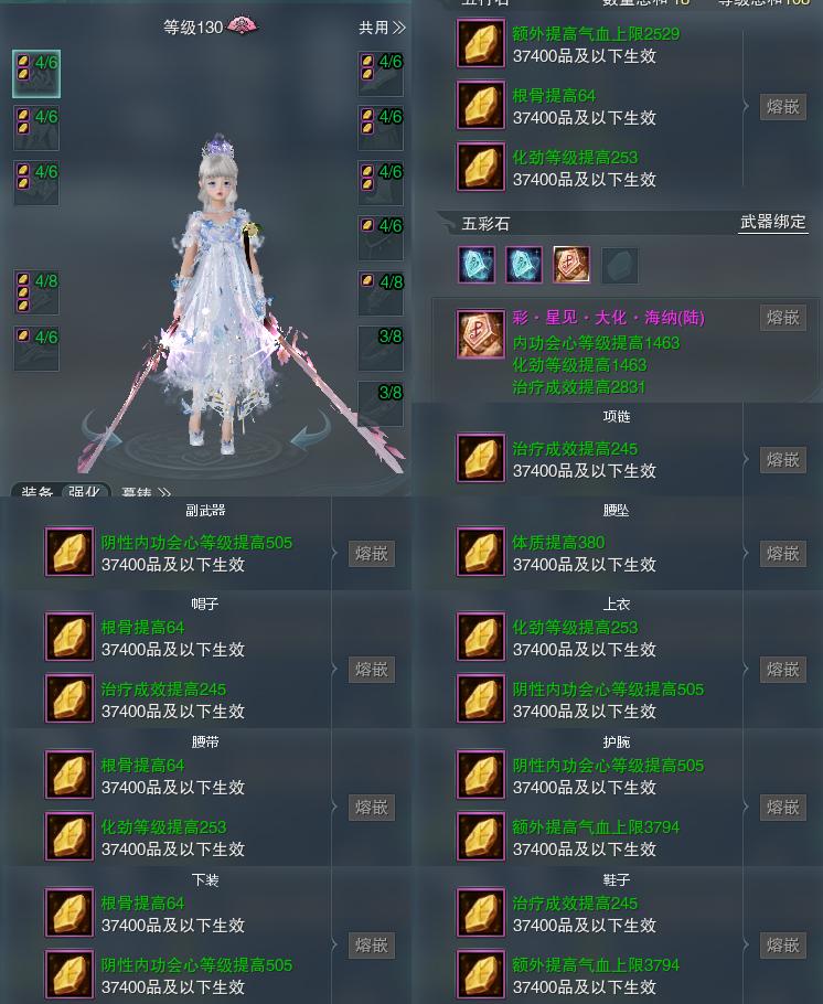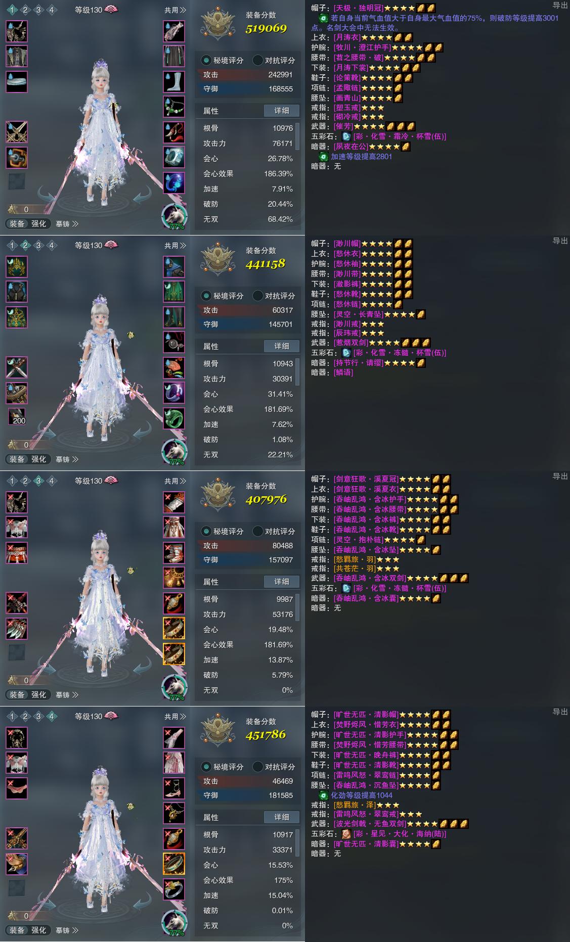 【装备】130级,冰心诀PVE519069,云裳心经装备二441158,冰心诀PVP407976,云裳心经PVP451786