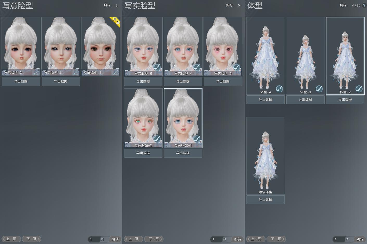 【捏脸】写意脸型3个,写实脸型5个,体型4个
