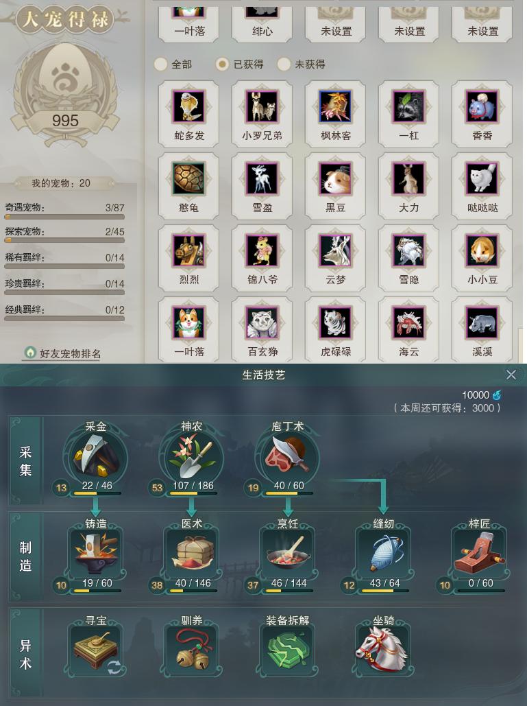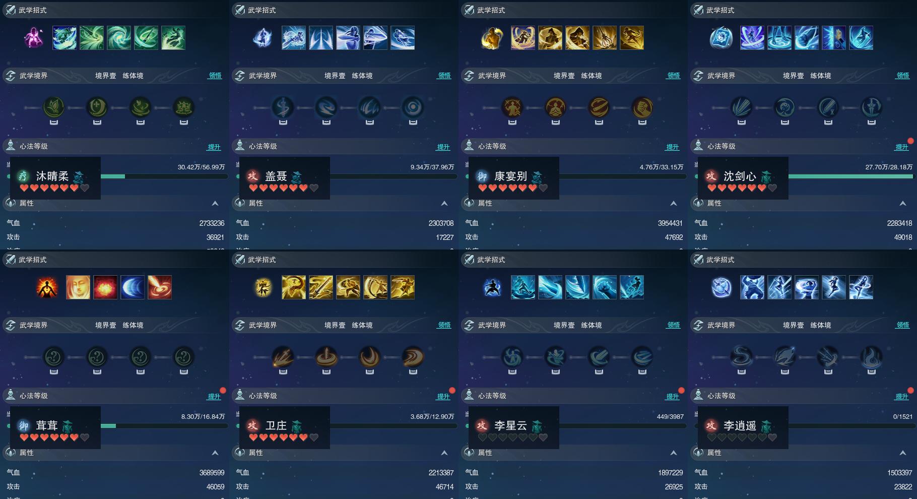 【同伴】沐晴柔80级境界壹,盖聂77级境界壹,康宴别76级境界壹,沈剑心76级境界壹,茸茸志71级境界壹,卫庄志69级境界壹,李星云40级境界壹,李逍遥1级境界壹