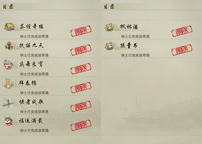 【奇遇】6个[扶摇九天, 茶馆奇缘, 庆舞良宵, 侠者成歌, 拜春擂, 福运满载]