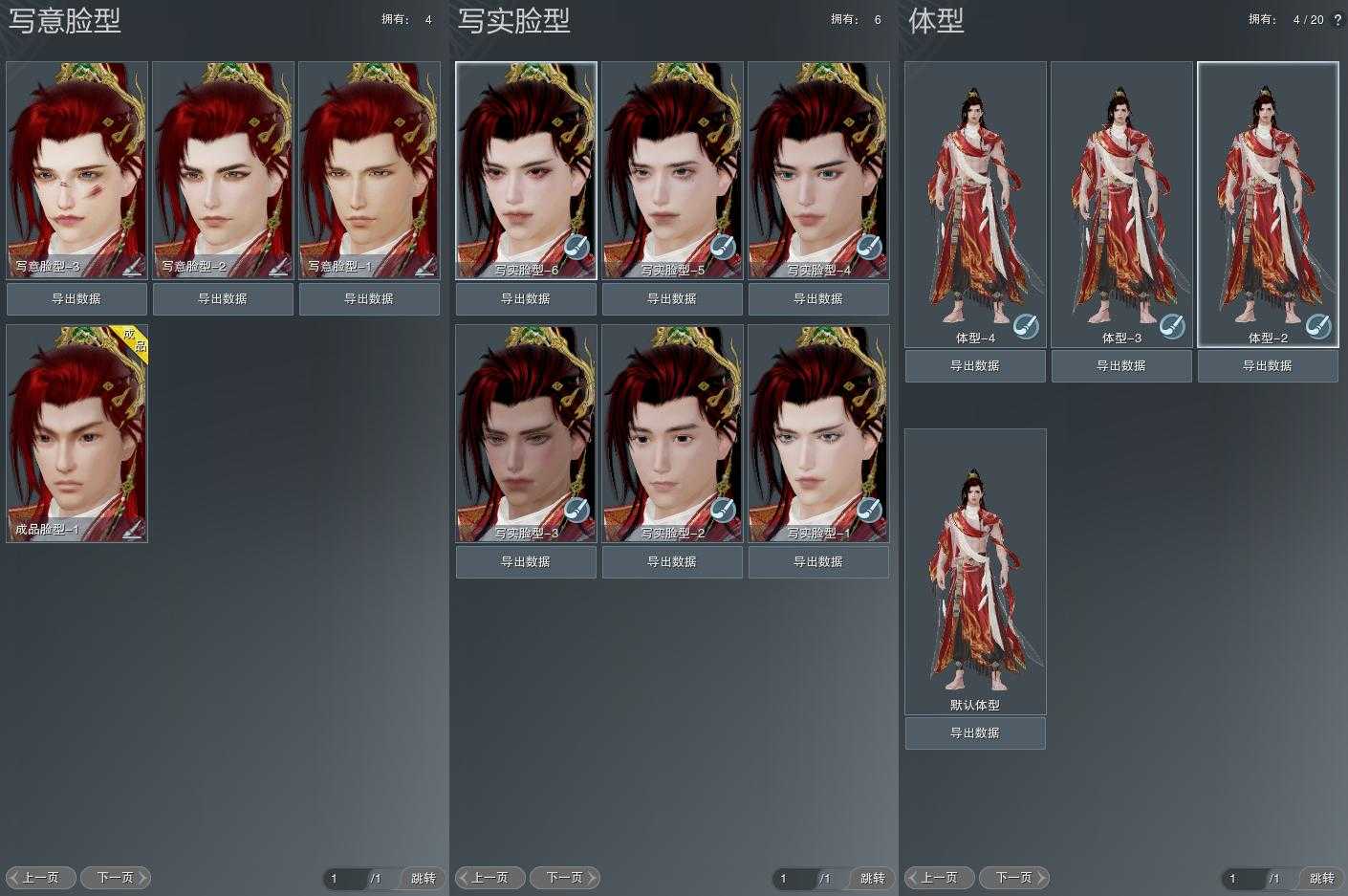 【捏脸】写意脸型4个,写实脸型6个,体型4个
