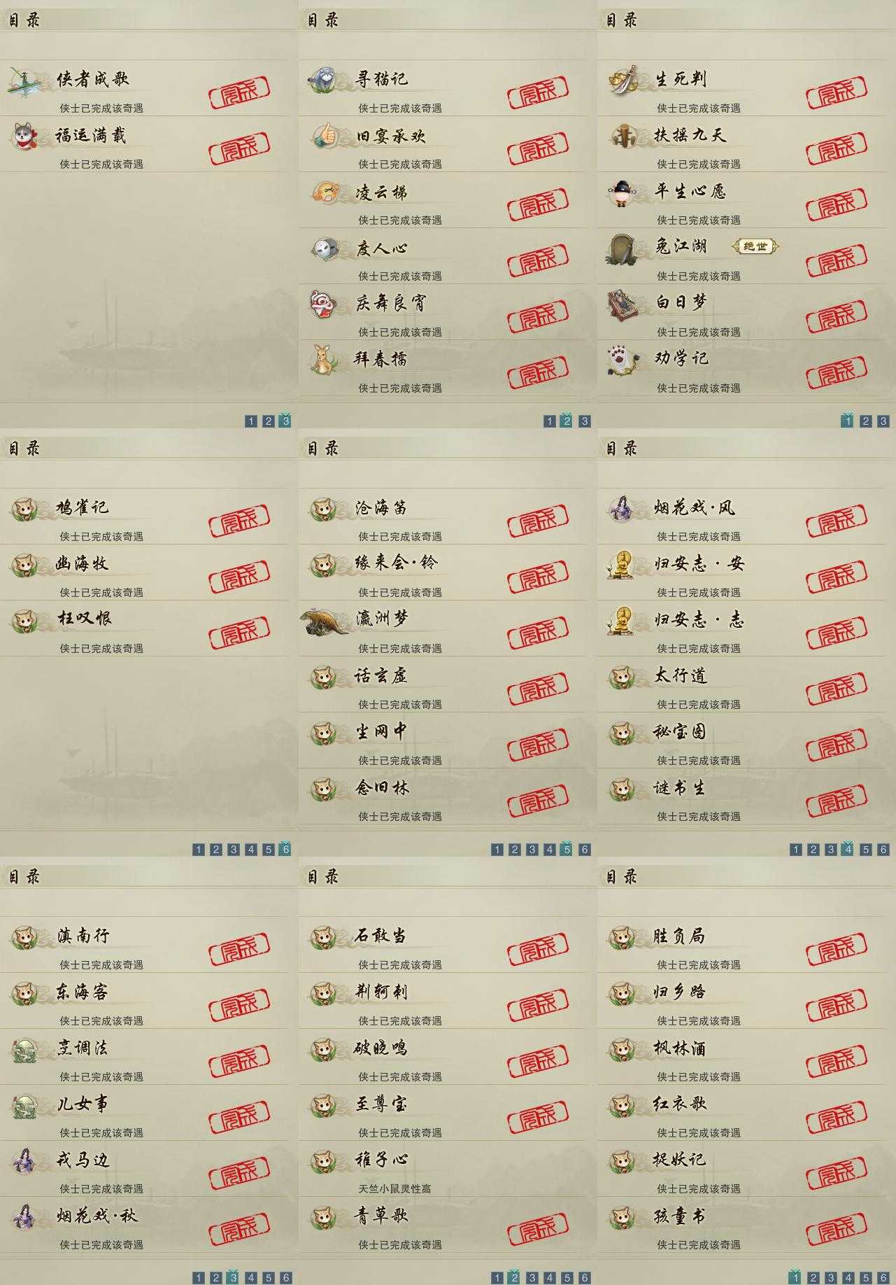 【奇遇】14个[白日梦, 劝学记, 平生心愿, 兔江湖, 扶摇九天, 寻猫记, 庆舞良宵, 生死判, 凌云梯, 度人心, 旧宴承欢, 侠者成歌, 拜春擂, 福运满载]