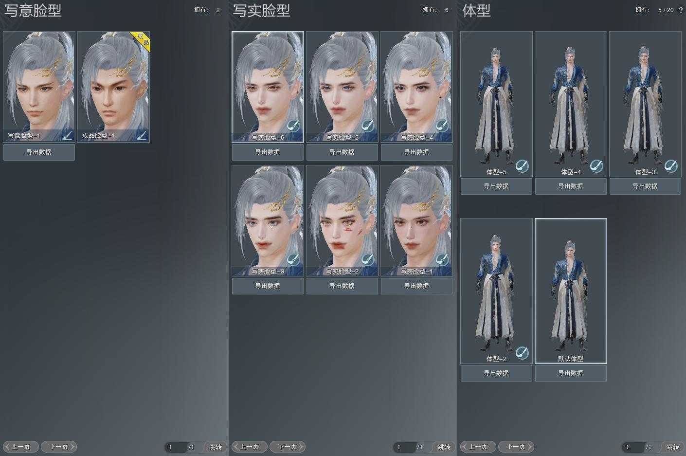 【捏脸】写意脸型2个,写实脸型6个,体型5个