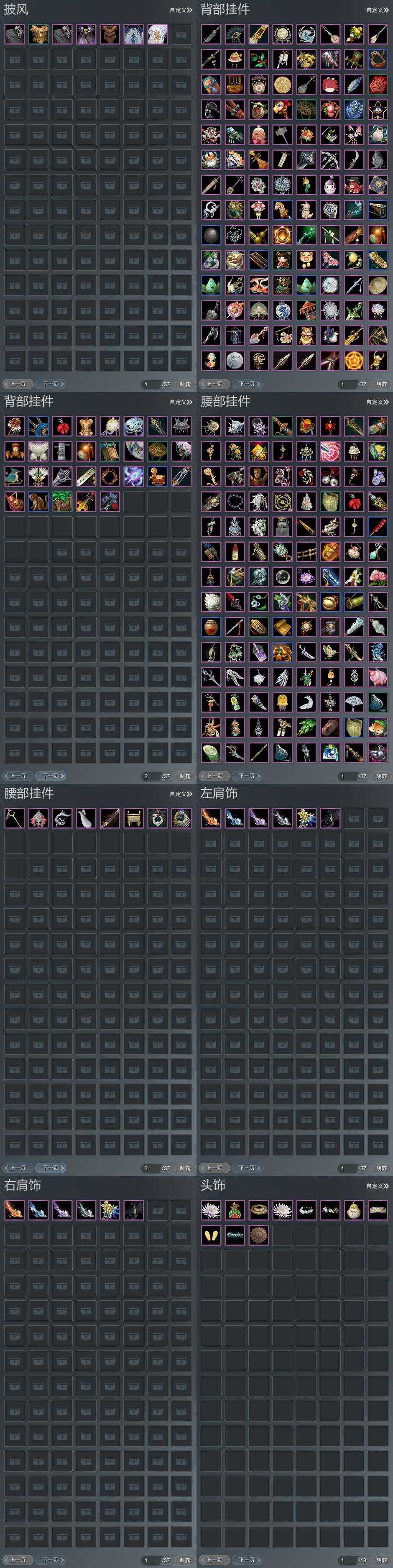 【披风】7个,[7W资历披风, 一代战令披风, 刀宗盒披风]