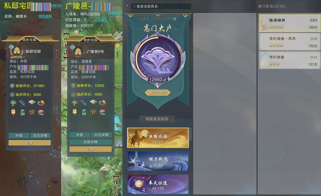 【家园】房屋等级16,社区等级了,私邸宅园,梓行点12993