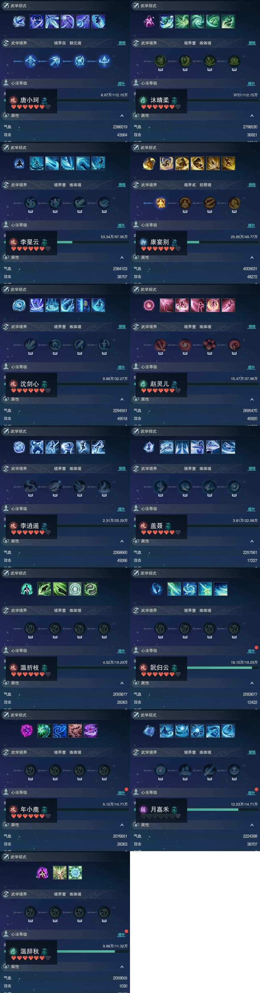 【同伴】唐小珂85级境界伍,沐晴柔85级境界壹,李星云84级境界壹,康宴别79级境界贰,沈剑心77级境界壹,赵灵儿77级境界壹,李逍遥74级境界壹,盖聂志73级境界壹,温折枝72级境界壹,阮归云72级境界壹,年小鹿70级境界壹,月嘉禾70级境界壹,温辞秋68级境界壹