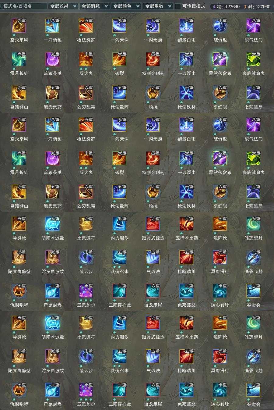 【橙武】(仅本门派)[120小铁*257, 130小铁*29, 110玄晶*1, 90玄晶*2, 110小铁*200, 100小铁*296, 95小铁*400, 90小铁*187, 80小铁*253, 70小铁*261, 110CW麒天, 110CW麟战, 90CW泰阿, 90CW千叶长生, 门派特效岚尘金蛇]
