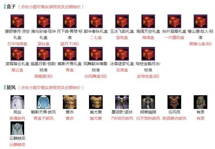 单盒成衣:[蓝游园衣, 六中衣, 绿懒猪衣, 星源盒衣, 白雨山衣, 蓝幽馥衣替, 白龙隐衣]