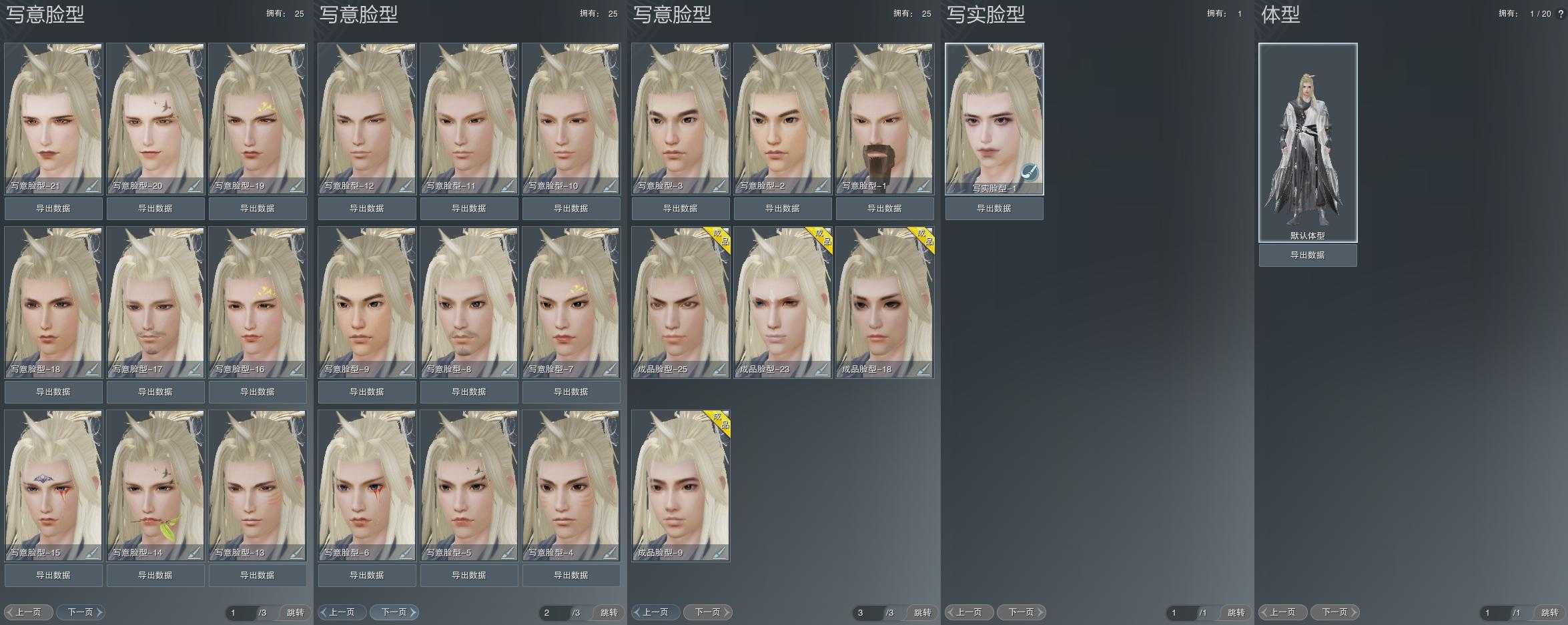 【捏脸】写意脸型25个,写实脸型1个,体型1个