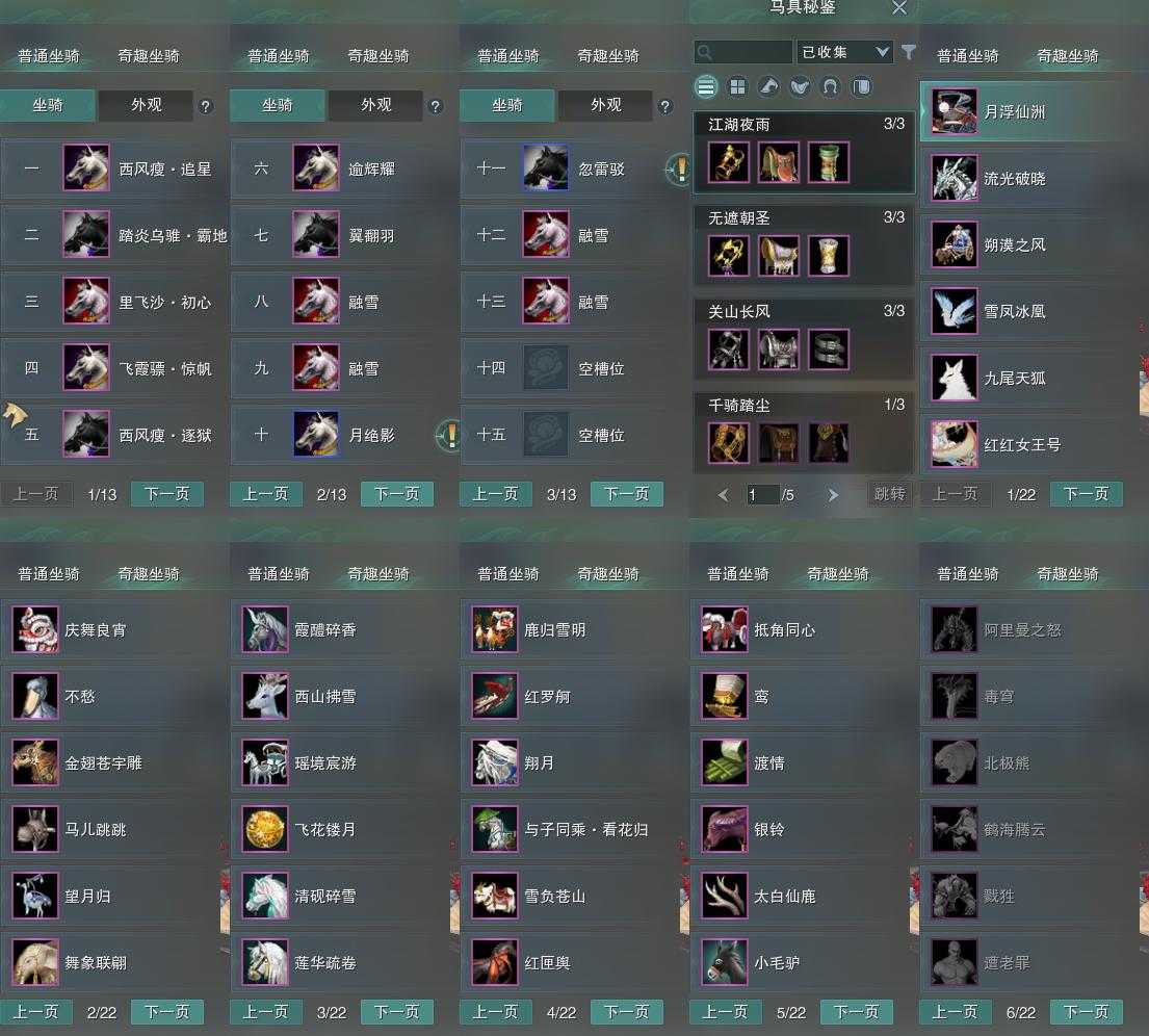 【坐骑】13个[踏炎霸地, 西风瘦逐狱, 西风瘦追星, 飞霞骠惊帆, 里飞沙初心]