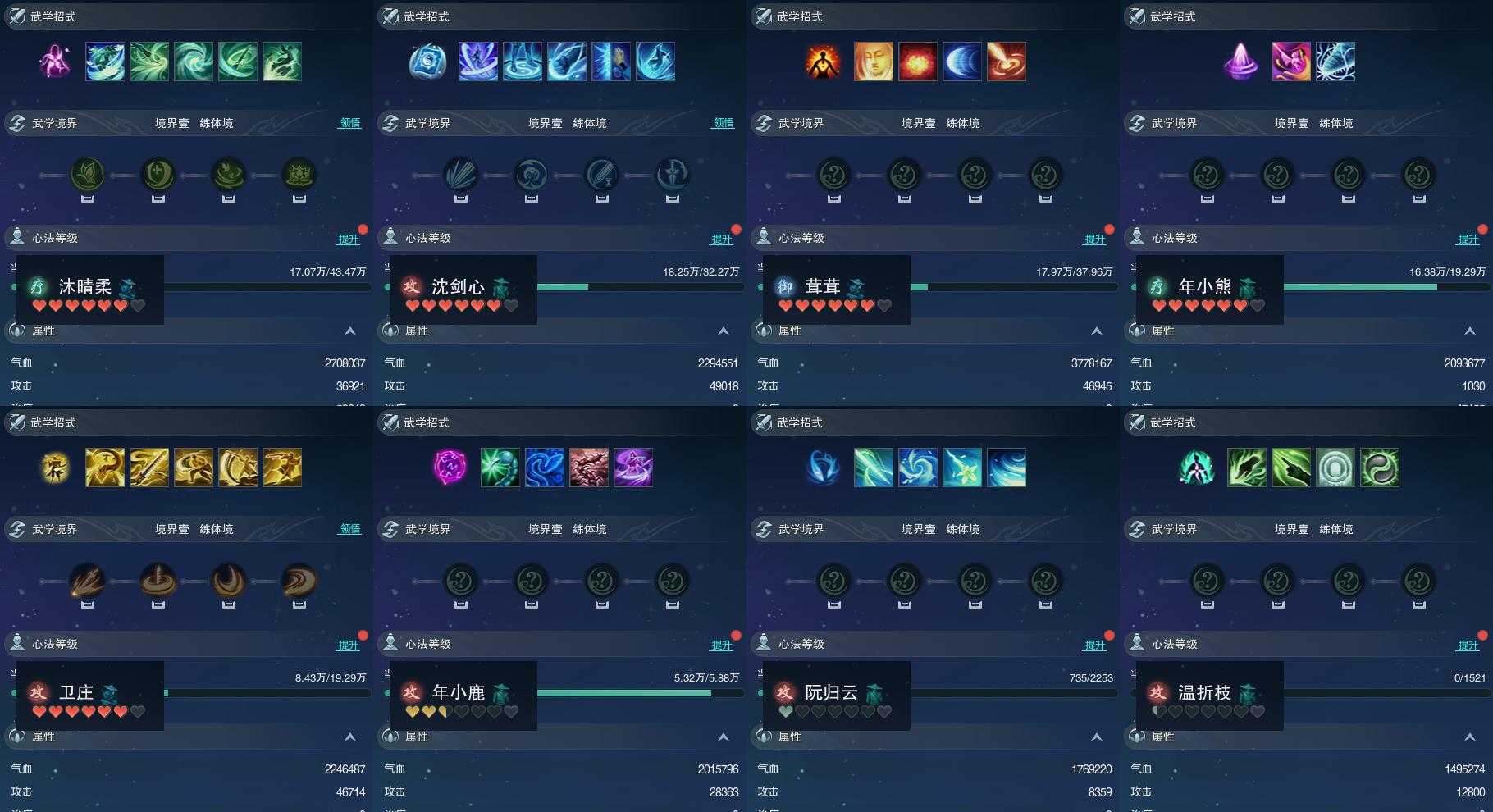 【同伴】沐晴柔78级境界壹,沈剑心77级境界壹,茸茸77级境界壹,年小熊72级境界壹,卫庄意72级境界壹,年小鹿63级境界壹,阮归云34级境界壹,温折枝1级境界壹