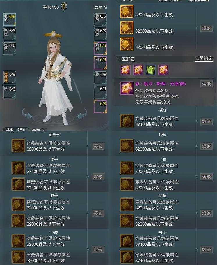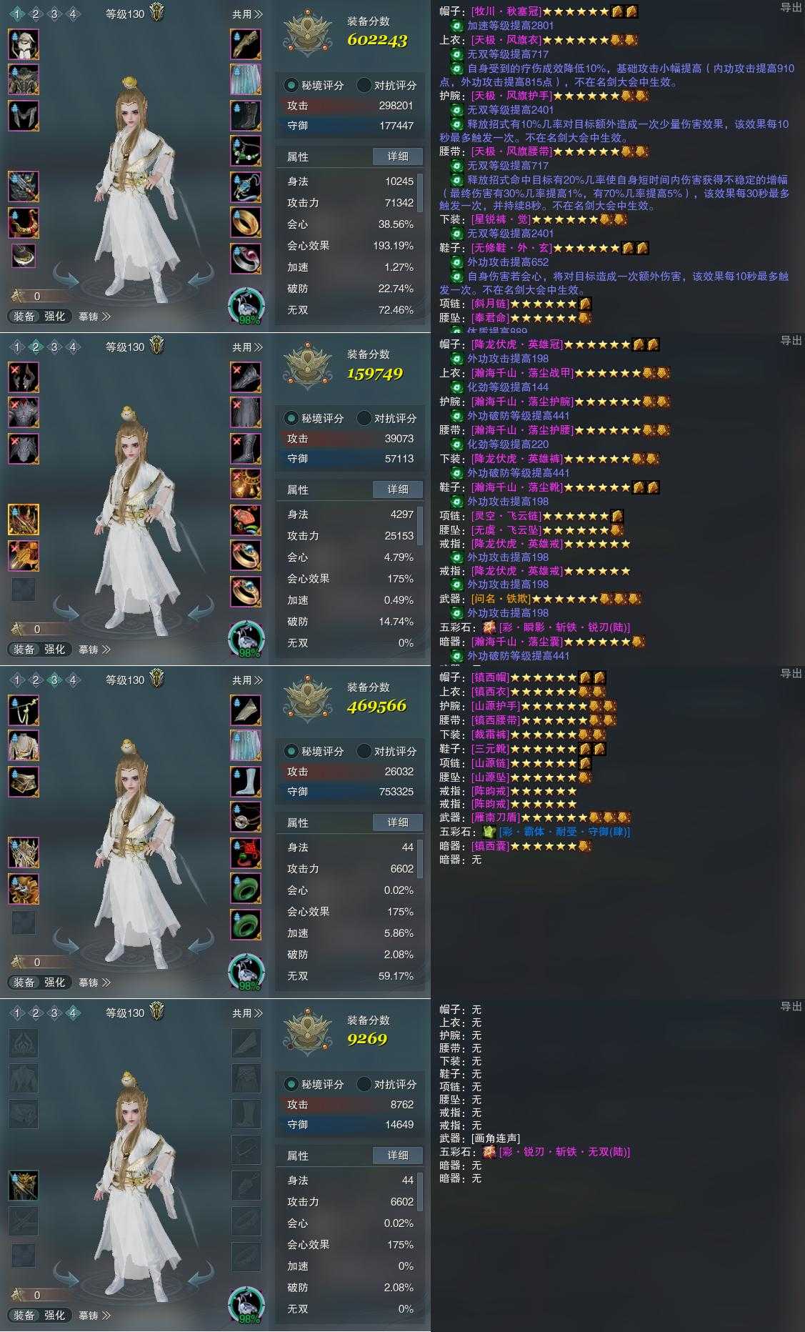 【装备】130级,分山劲PVE602243,装备二159749,铁骨衣PVE469566,装备四9269