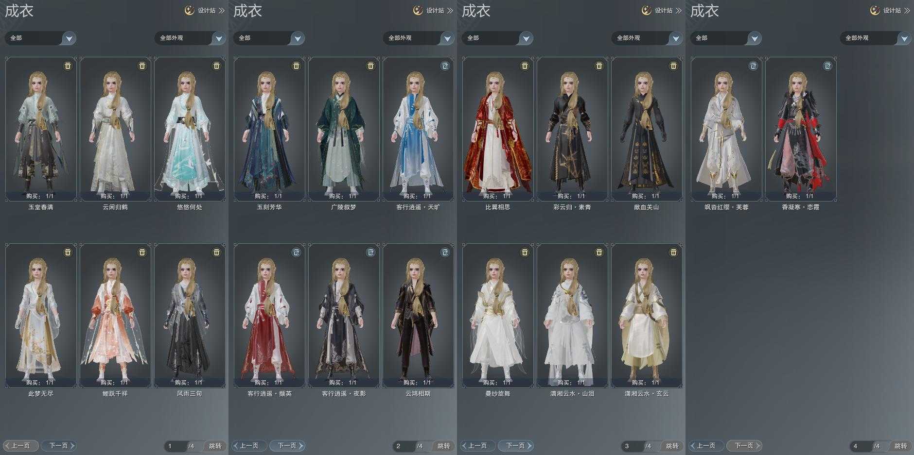 【成衣】总计20件,单盒成衣4件,限时限量9件,商城6件,下架1件
