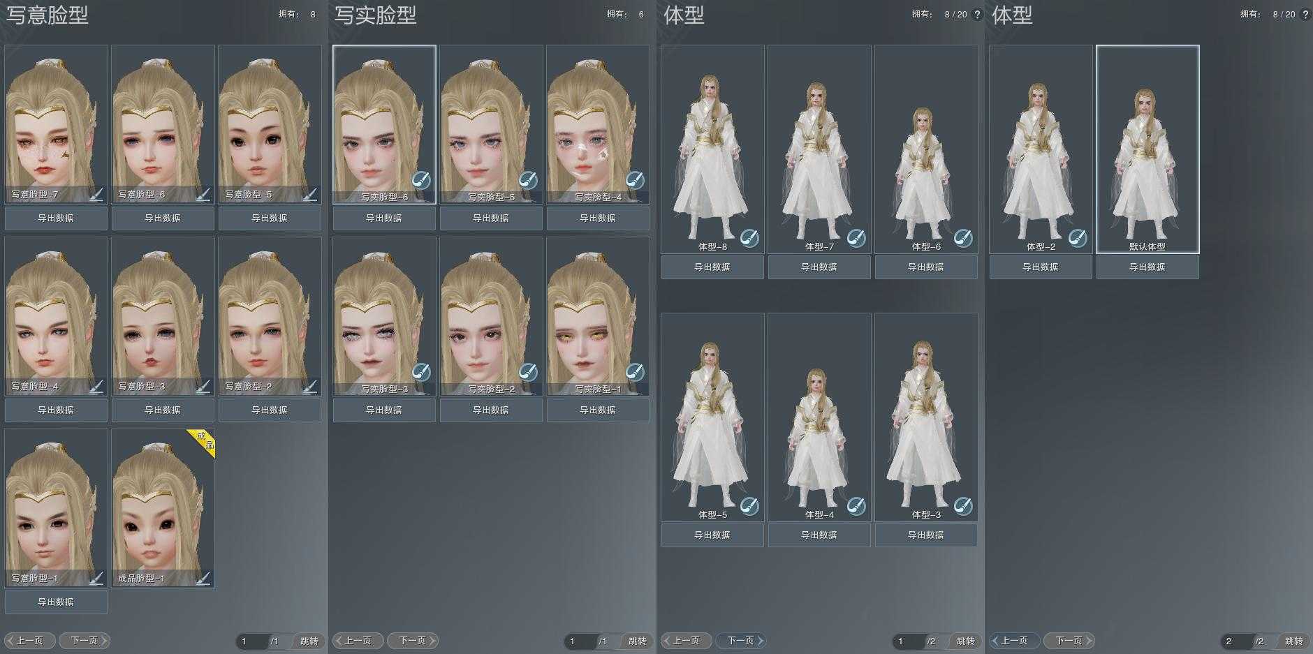 【捏脸】写意脸型8个,写实脸型6个,体型8个